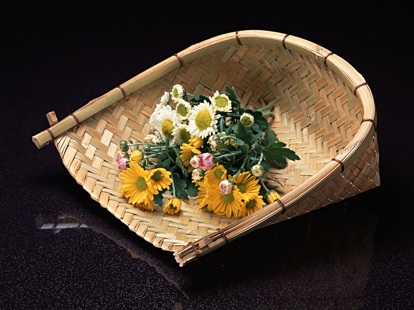 Скачать обои для рабочего стола Цветы в кошелке и фото