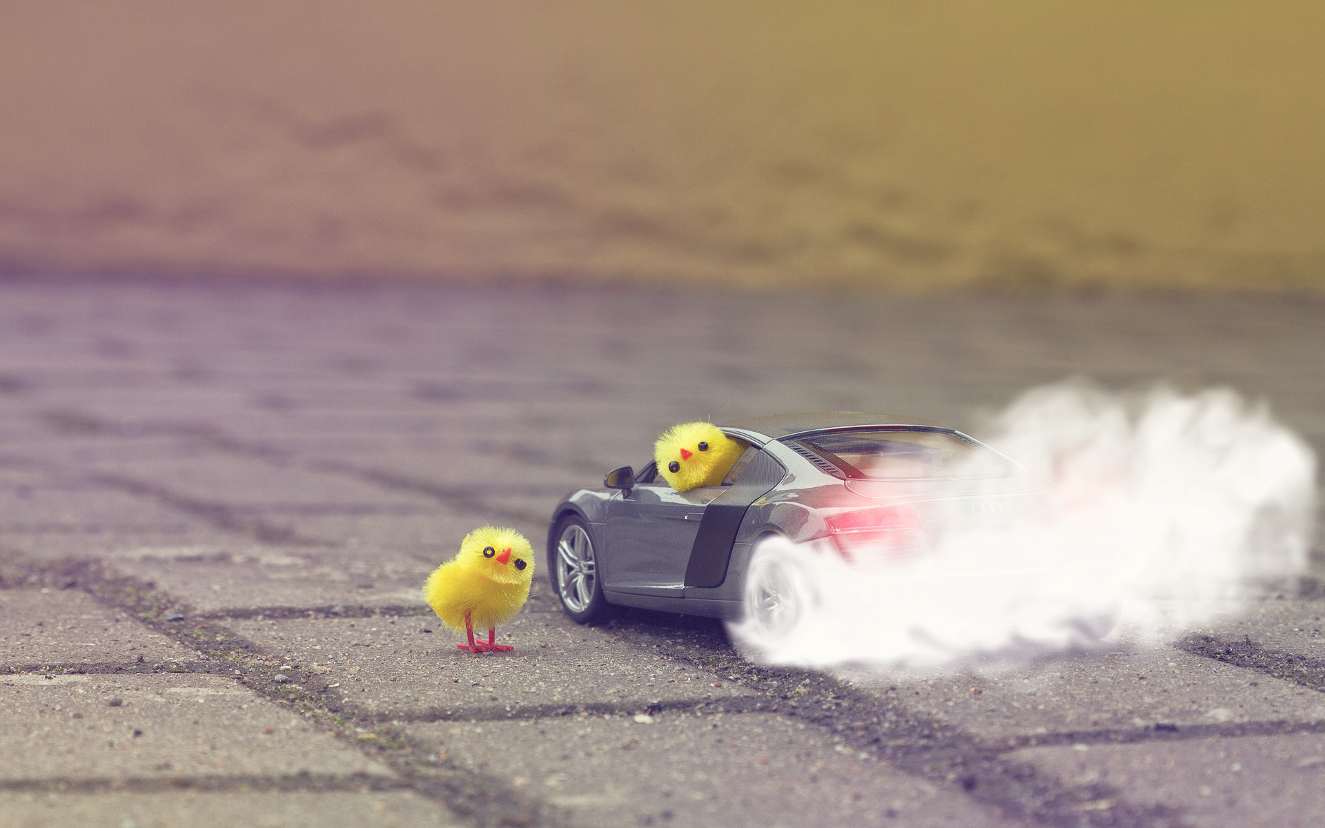 Скачать обои для рабочего стола Цыплята на гоночной машине и фото