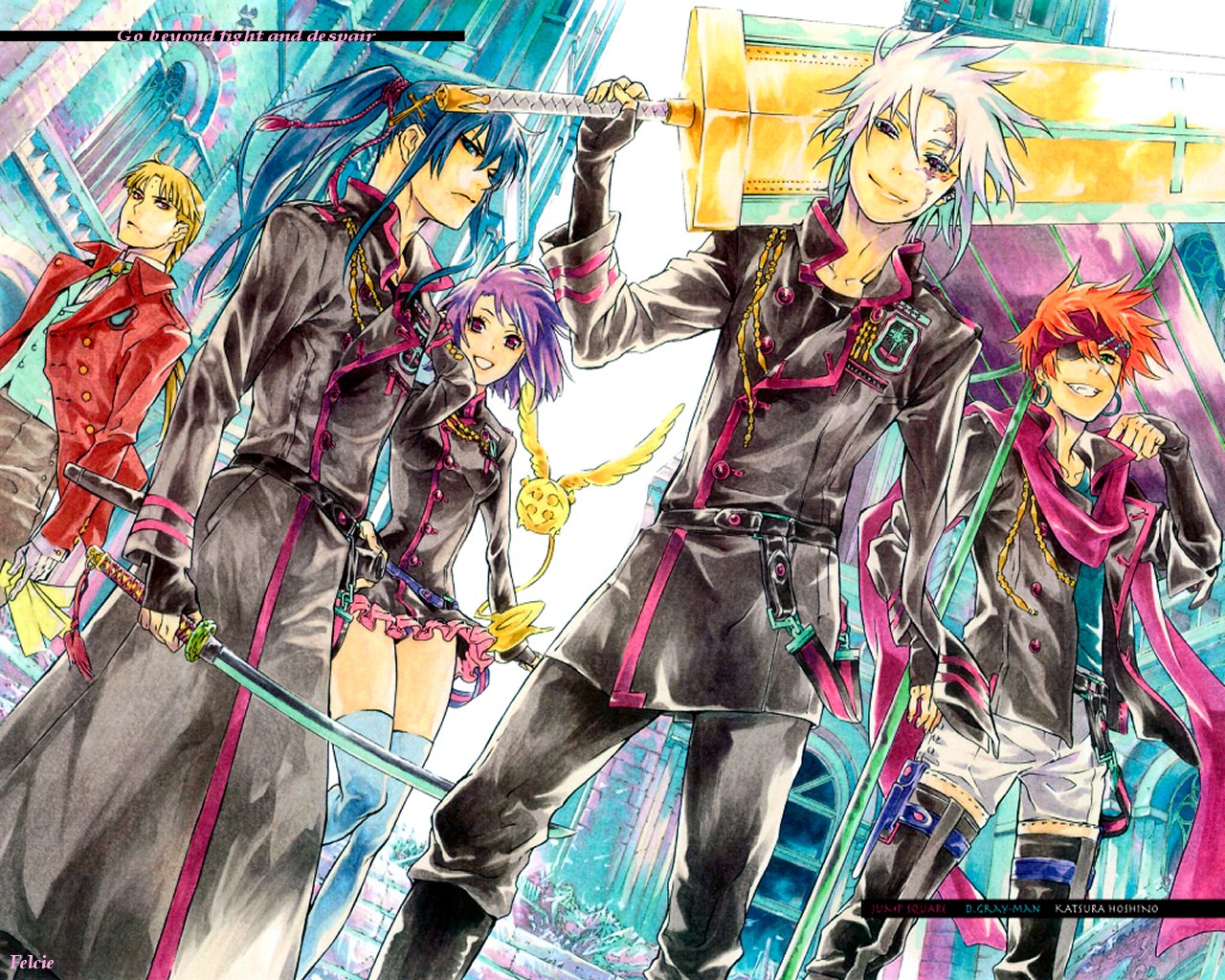 Скачать обои для рабочего стола D.Gray-Man - Аллен с золотым мечом и его друзья и фото