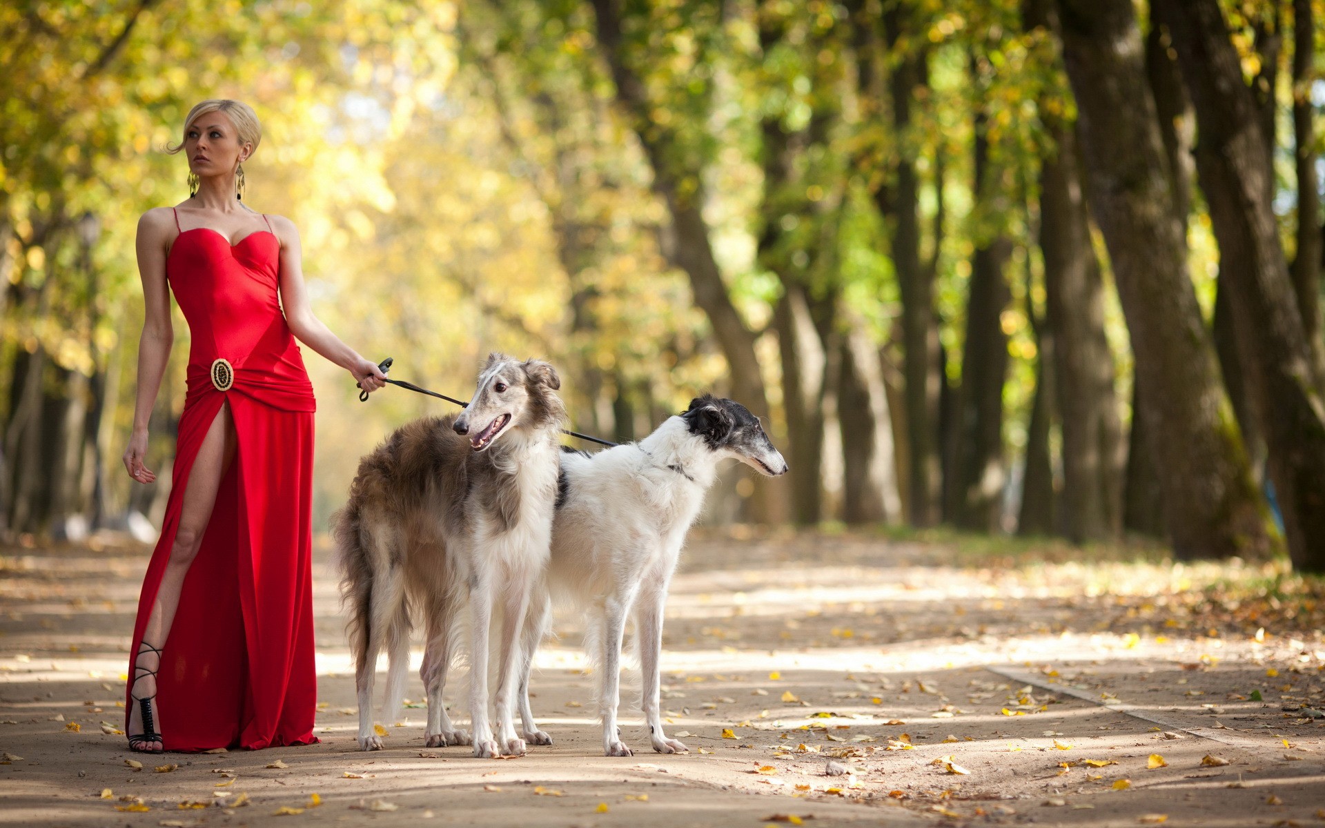 Скачать обои для рабочего стола Дама с собачками пароды колли и фото