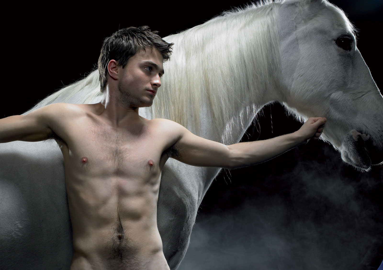 Скачать обои для рабочего стола Дэниэл Алан Рэдклифф и белая лошадь и фото