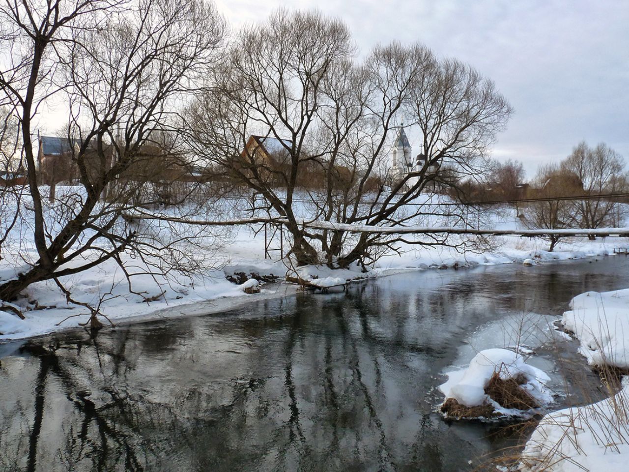 Скачать обои для рабочего стола Деревенский мостик ранней весной и фото