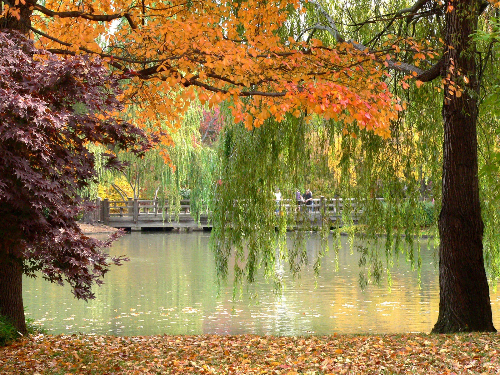 Скачать обои для рабочего стола Деревья и река осенью и фото