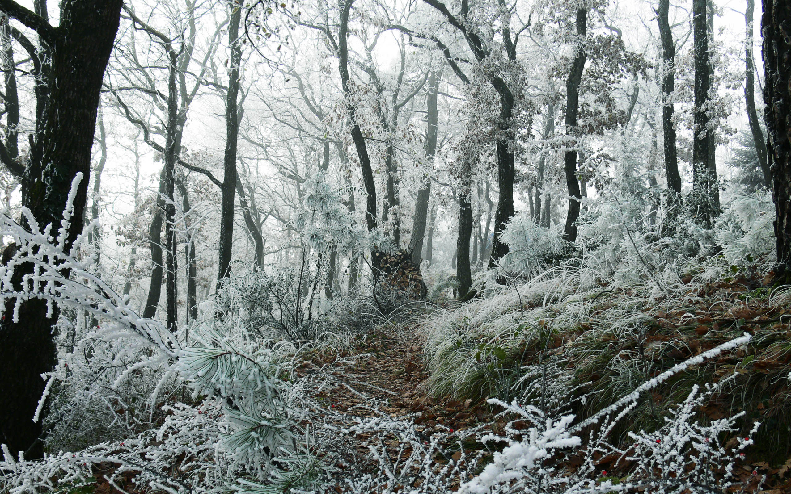 Скачать обои для рабочего стола Деревья и трава в изморози и фото