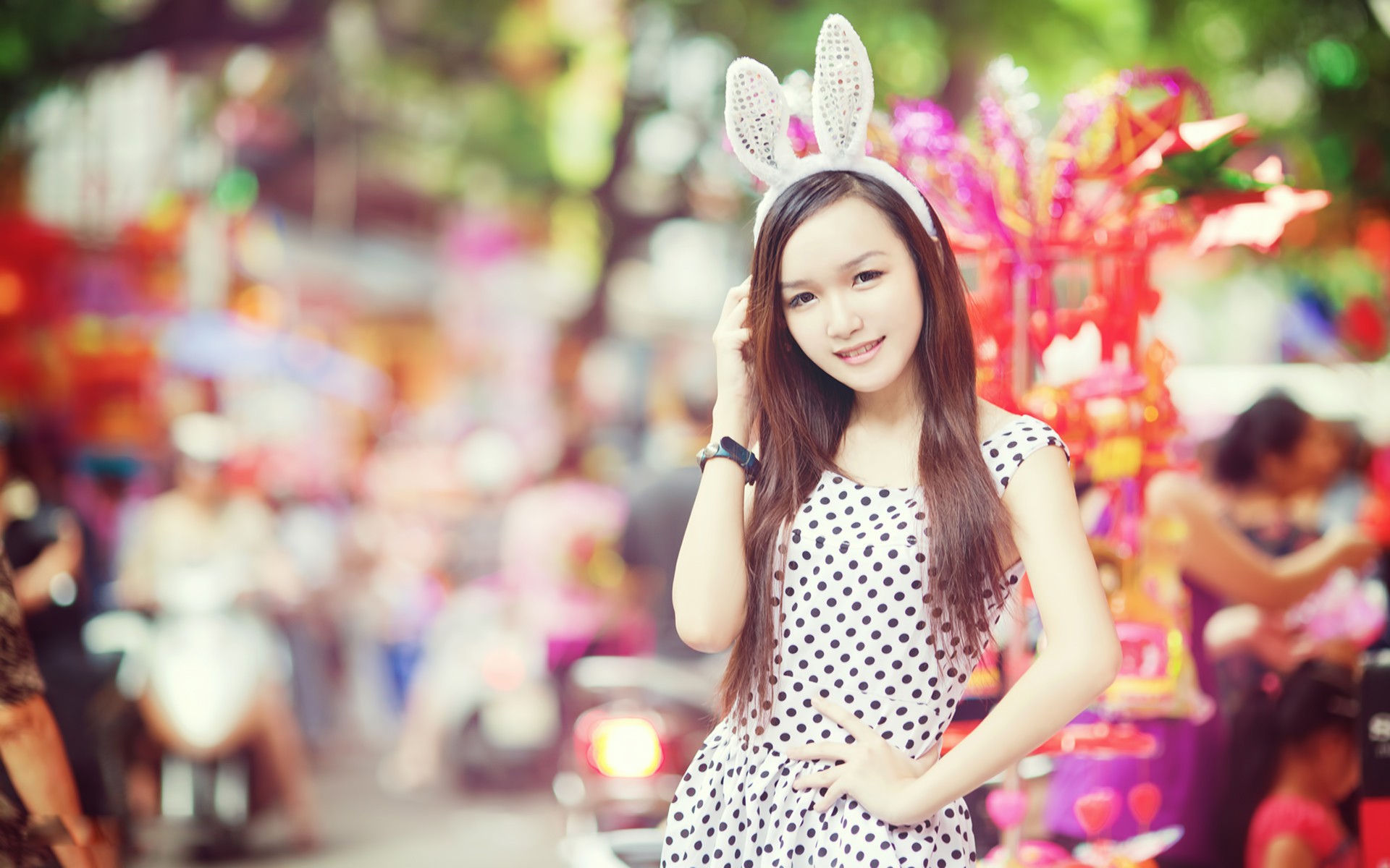 Скачать обои для рабочего стола Девченка с заячими ушками и фото