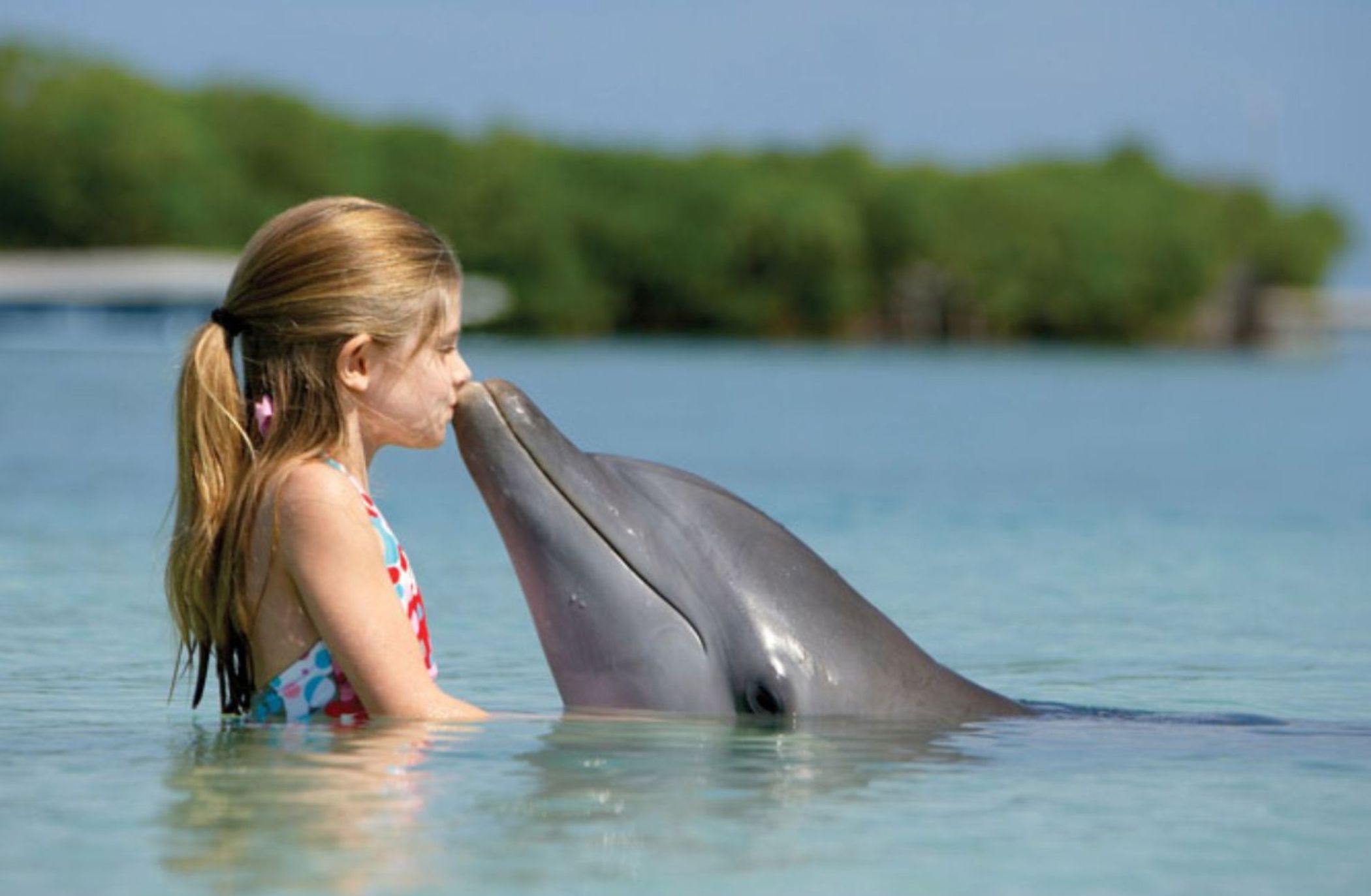 Скачать обои для рабочего стола Девочка и дельфин и фото