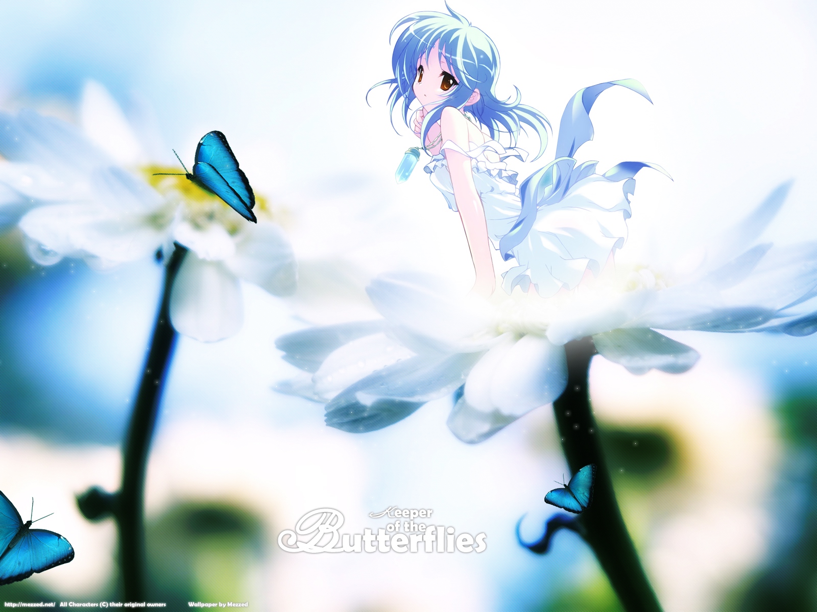 Скачать обои для рабочего стола Девочка на цветке и фото
