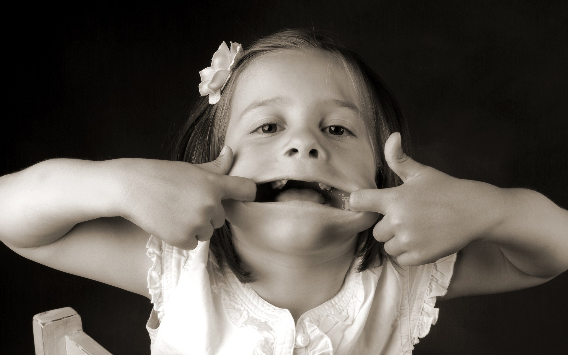 Скачать обои для рабочего стола Девочка растянула рот и фото