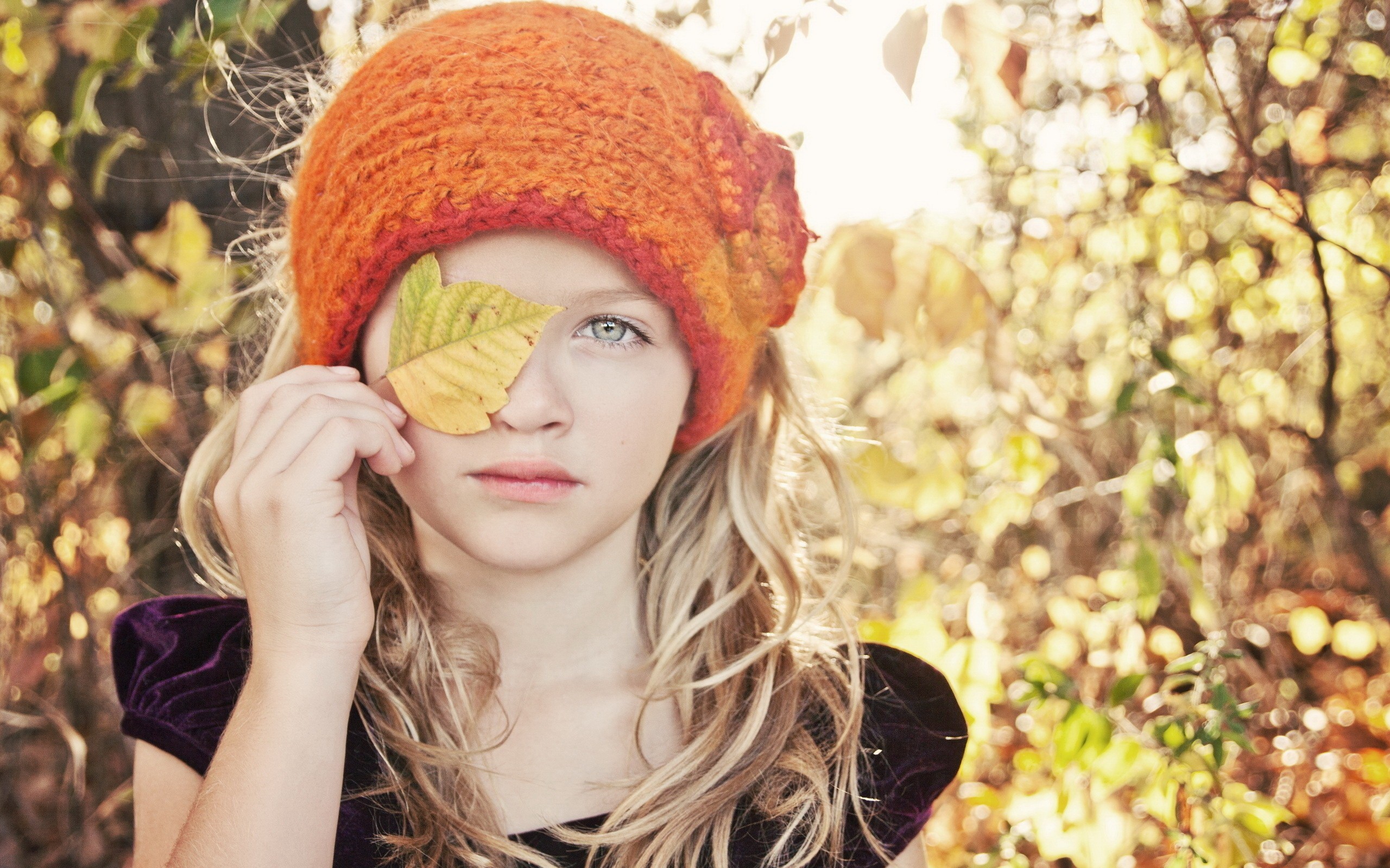 Скачать обои для рабочего стола девочка с листочком y глаза и фото
