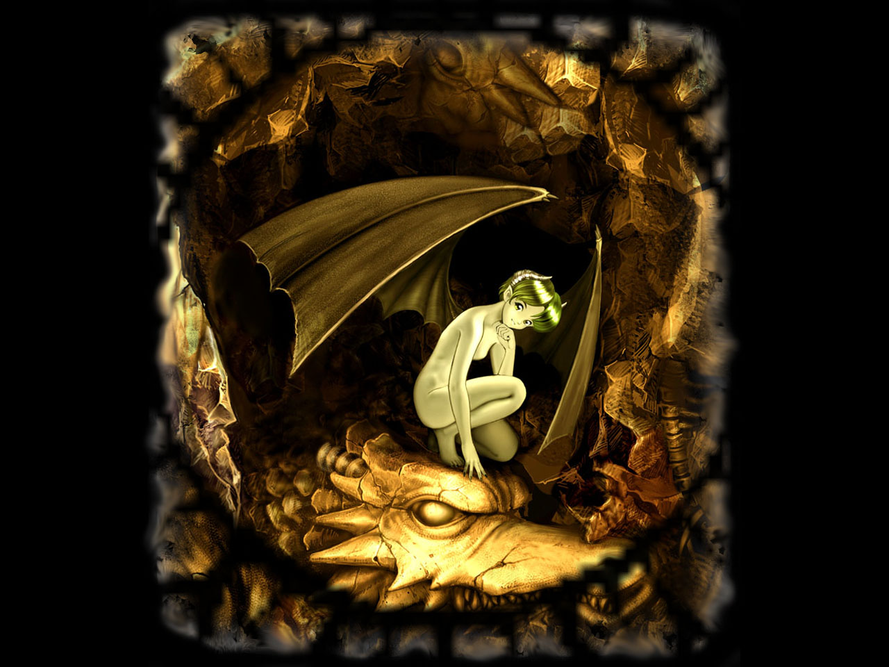 Скачать обои для рабочего стола Девушка-демон в подземелье нечисти и фото