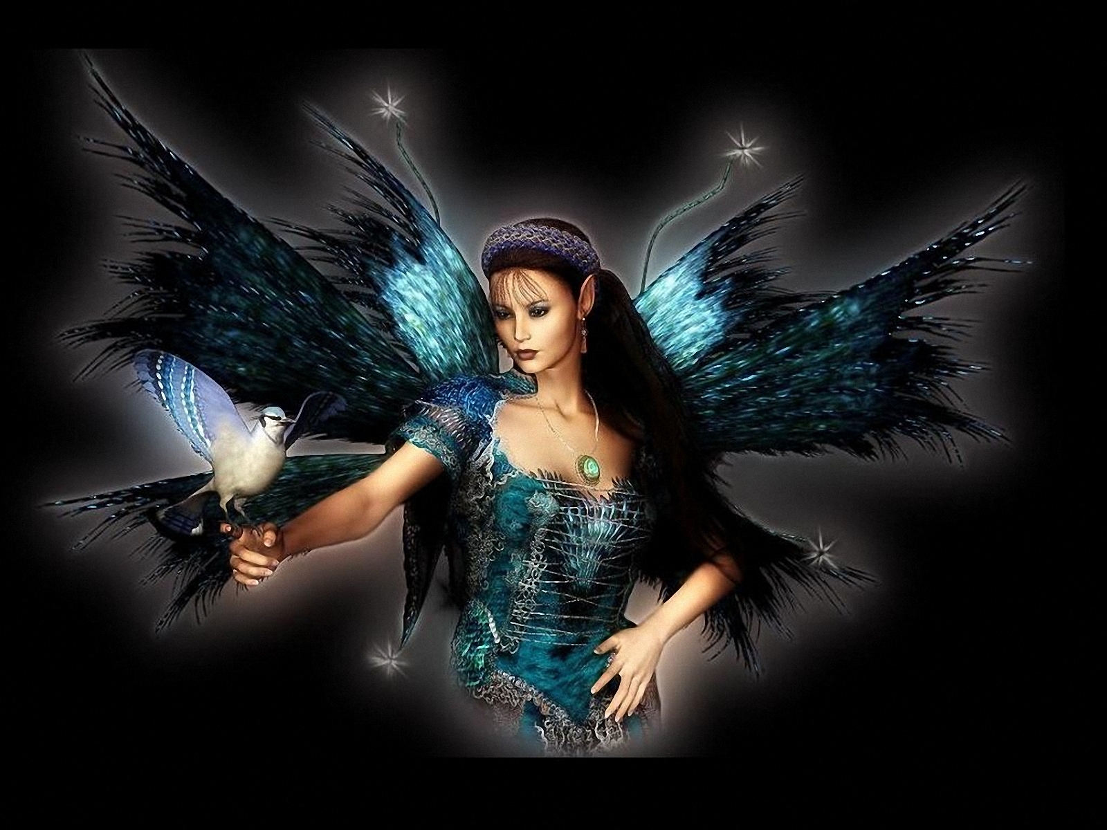 Скачать обои для рабочего стола Девушка эльф и голубь и фото
