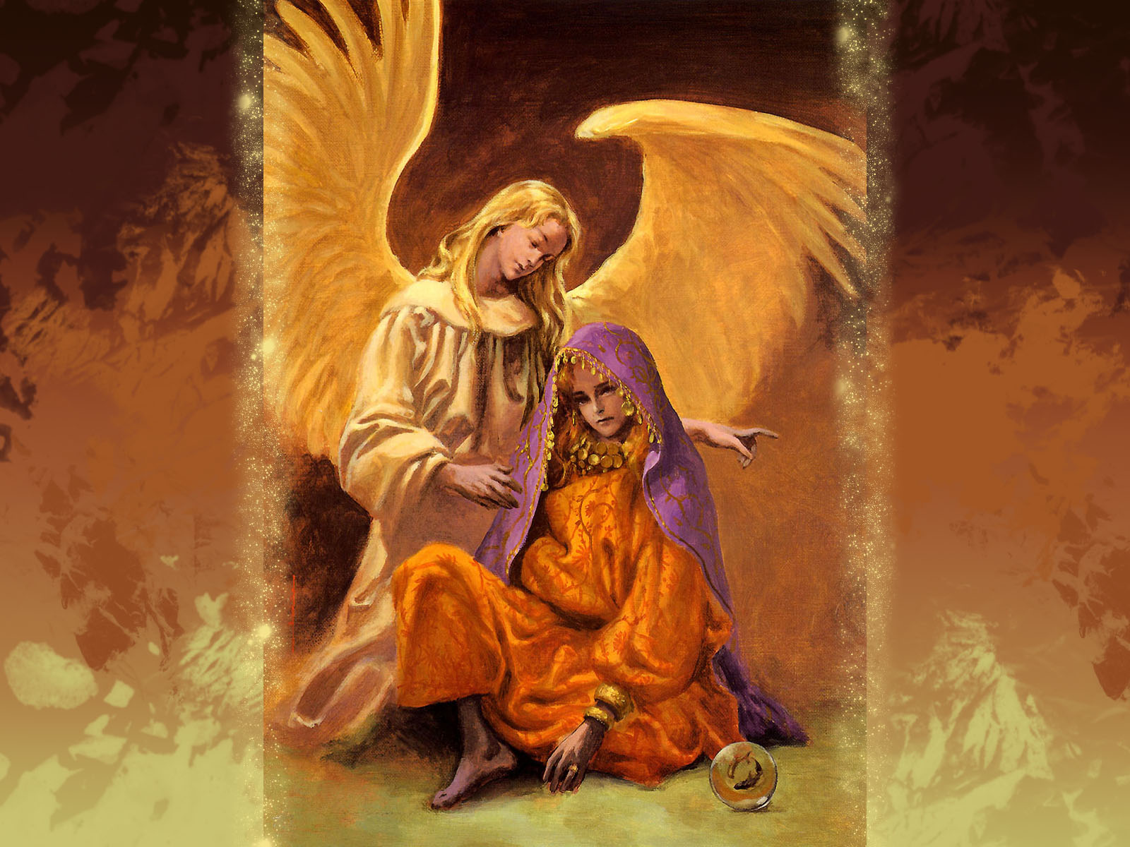 Скачать обои для рабочего стола Девушка и ангел хранитель и фото