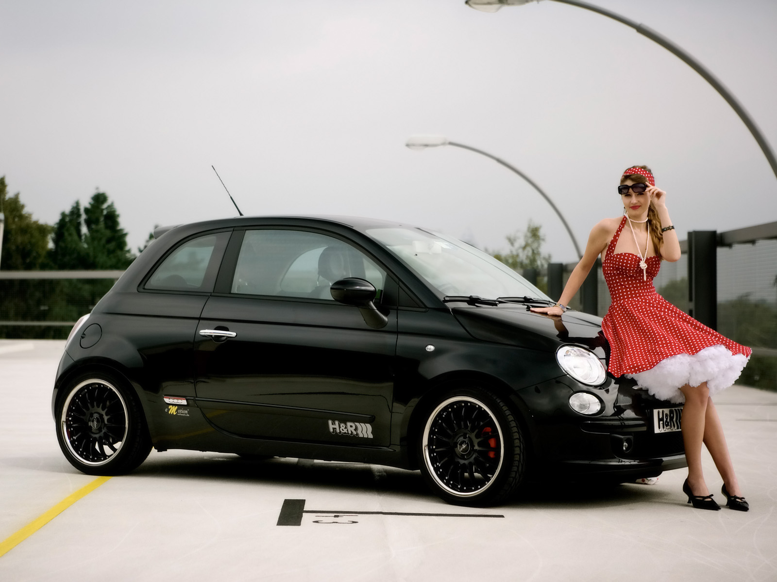 Скачать обои для рабочего стола Девушка и черное авто и фото