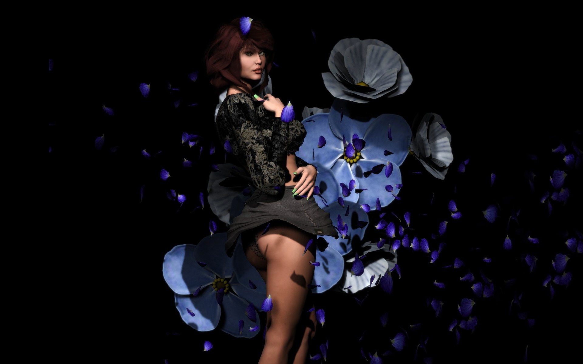 Скачать обои для рабочего стола Девушка и цветы и фото