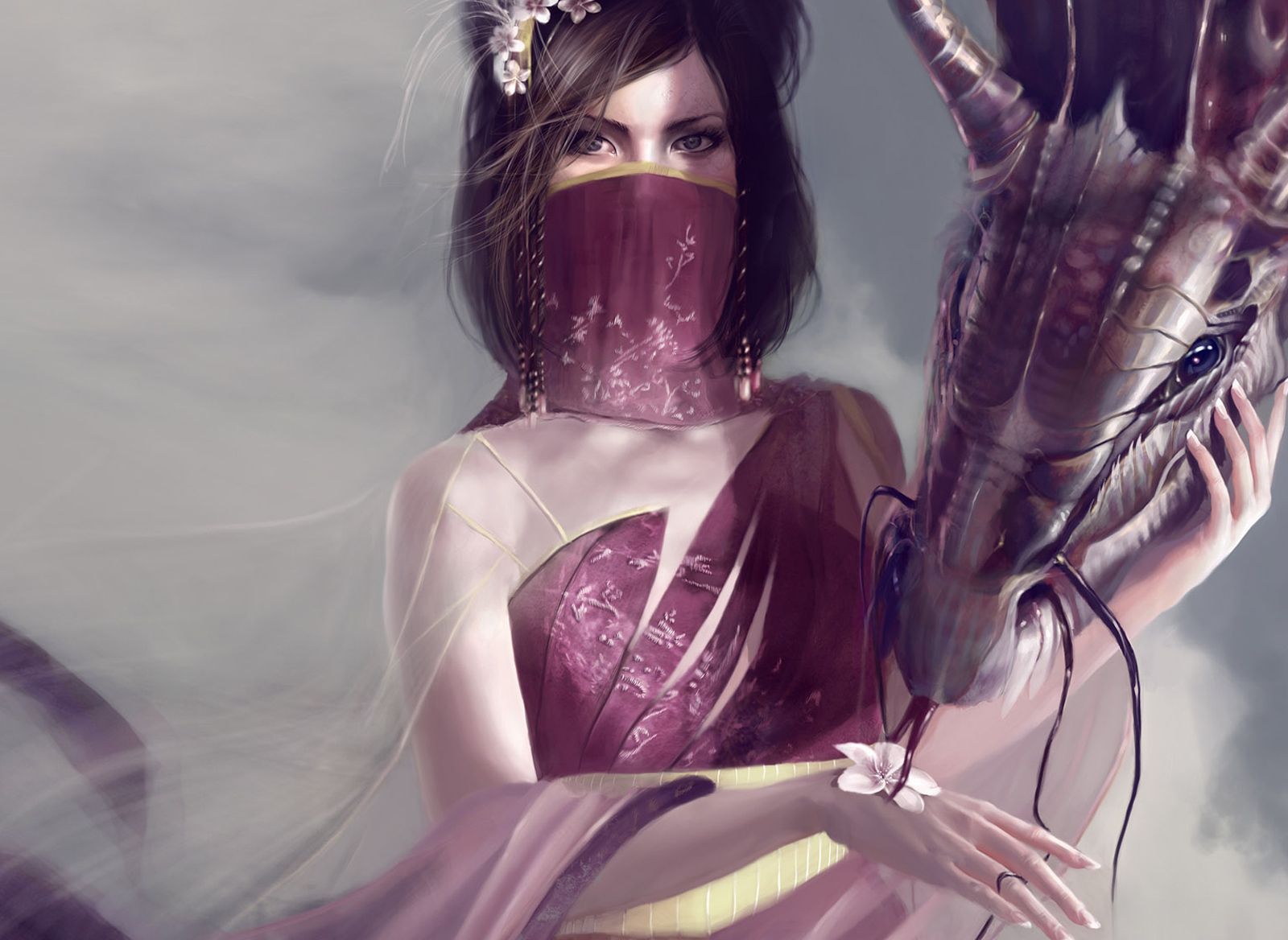 Скачать обои для рабочего стола Девушка и дракон и фото