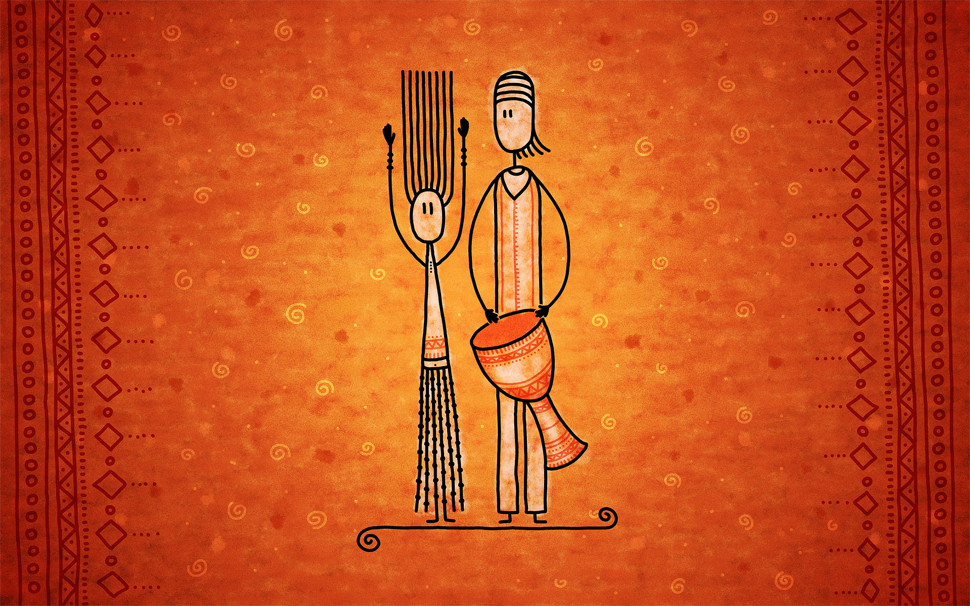 Скачать обои для рабочего стола Девушка и её муж с барабаном и фото