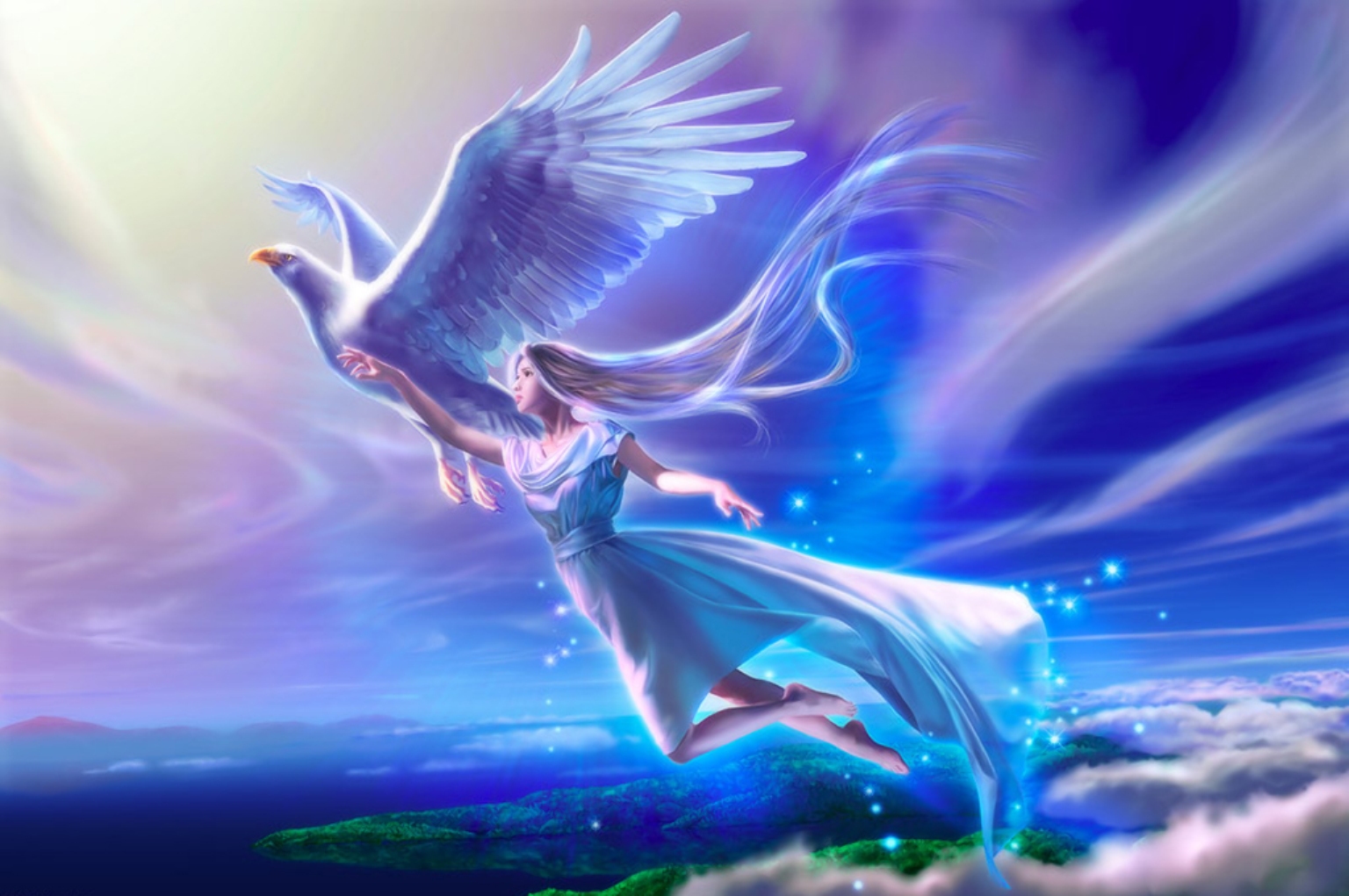 Скачать обои для рабочего стола Девушка и орел в небе и фото