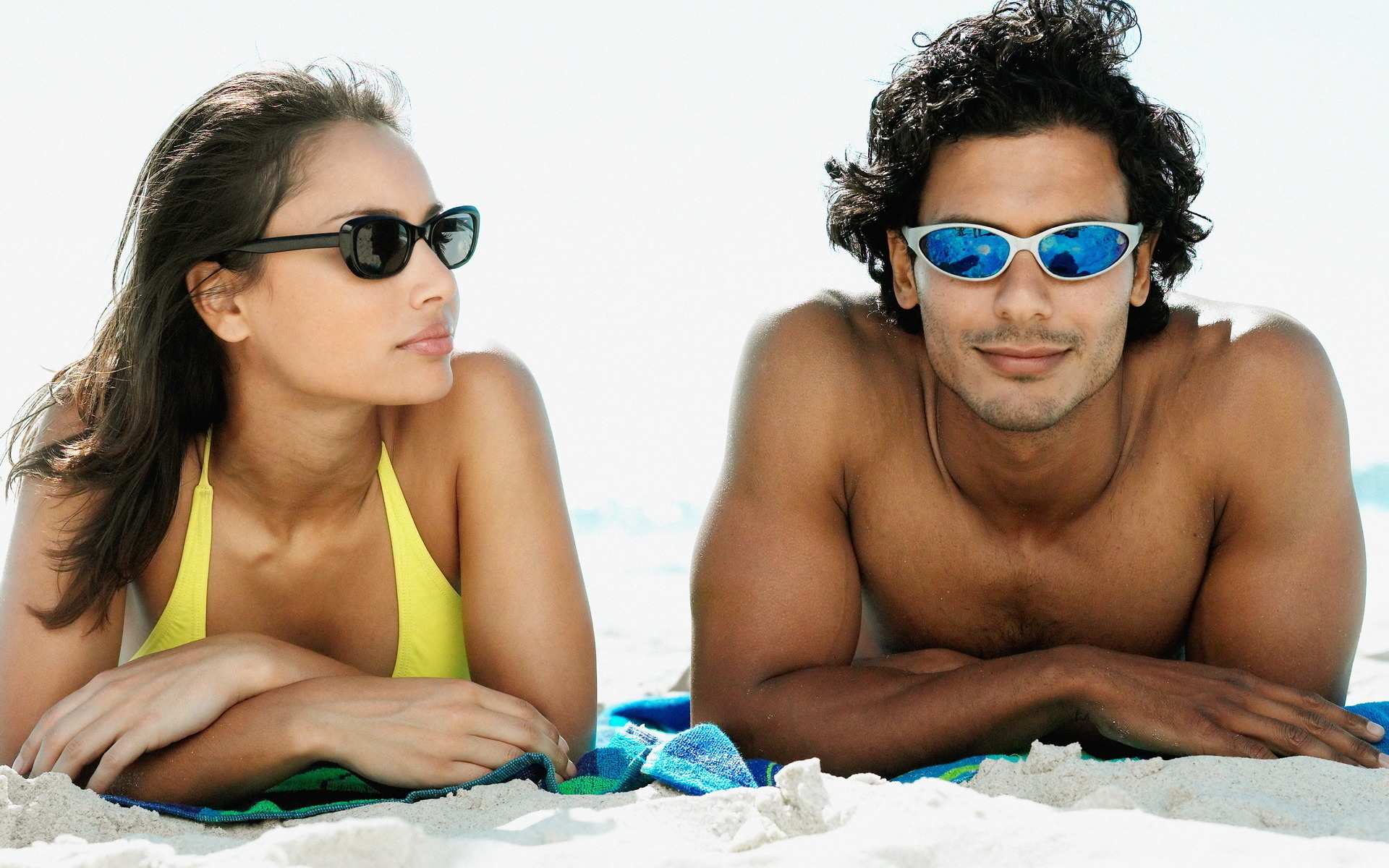 Скачать обои для рабочего стола Девушка и парень на пляже и фото