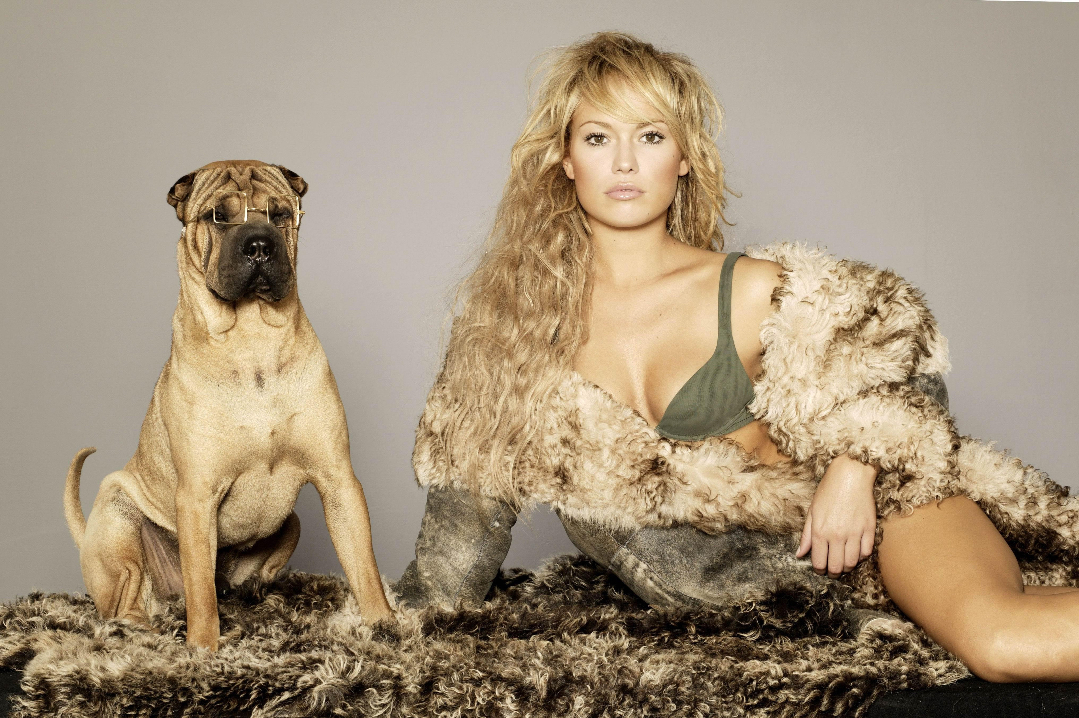 Скачать обои для рабочего стола Девушка и собака в очках и фото