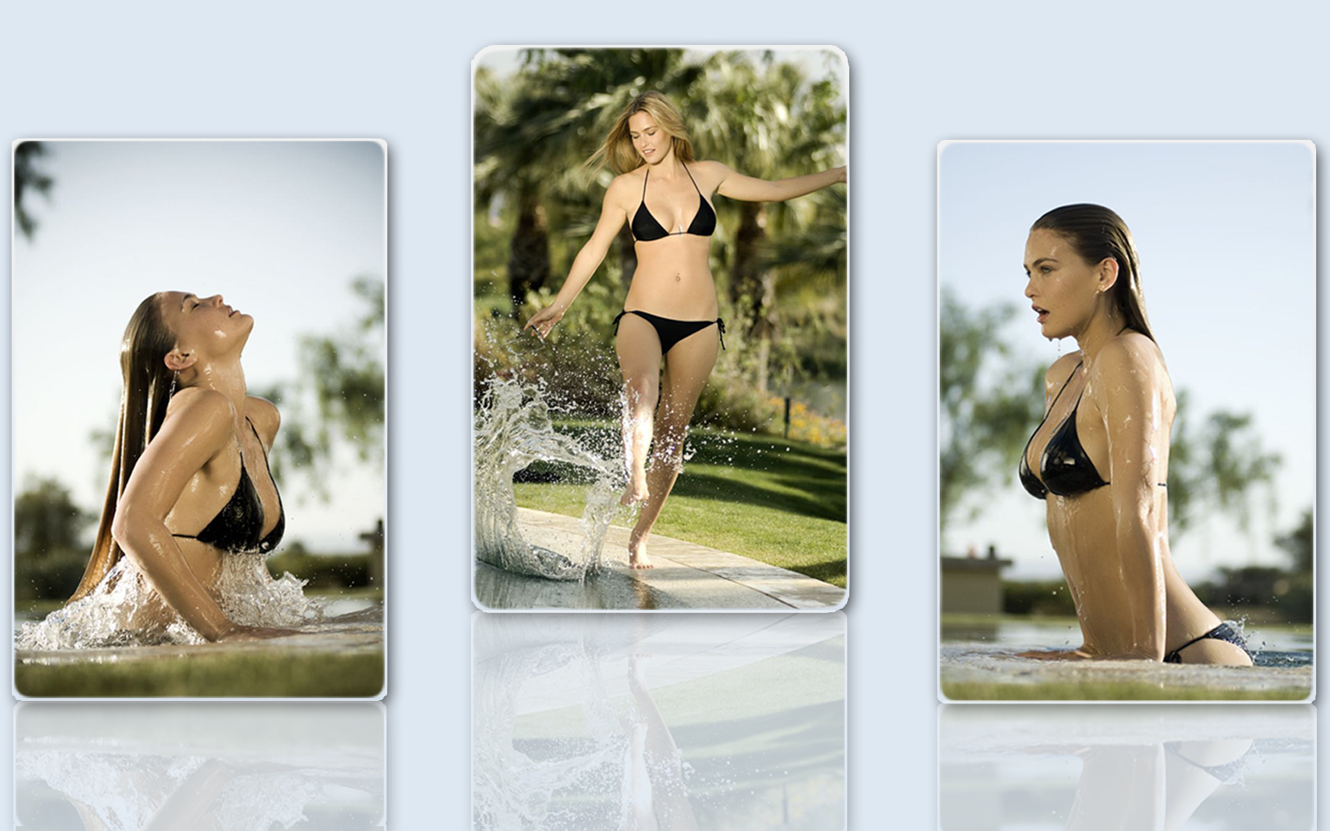 Похожие обои на Девушка и вода на трех фотках: