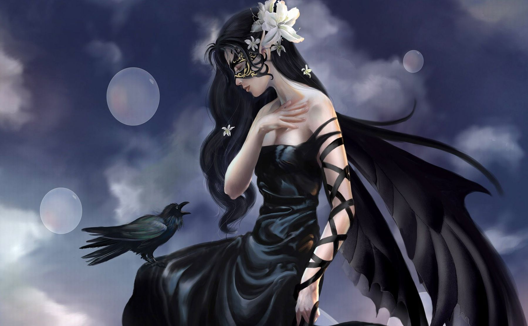 Скачать обои для рабочего стола Девушка и ворон и фото
