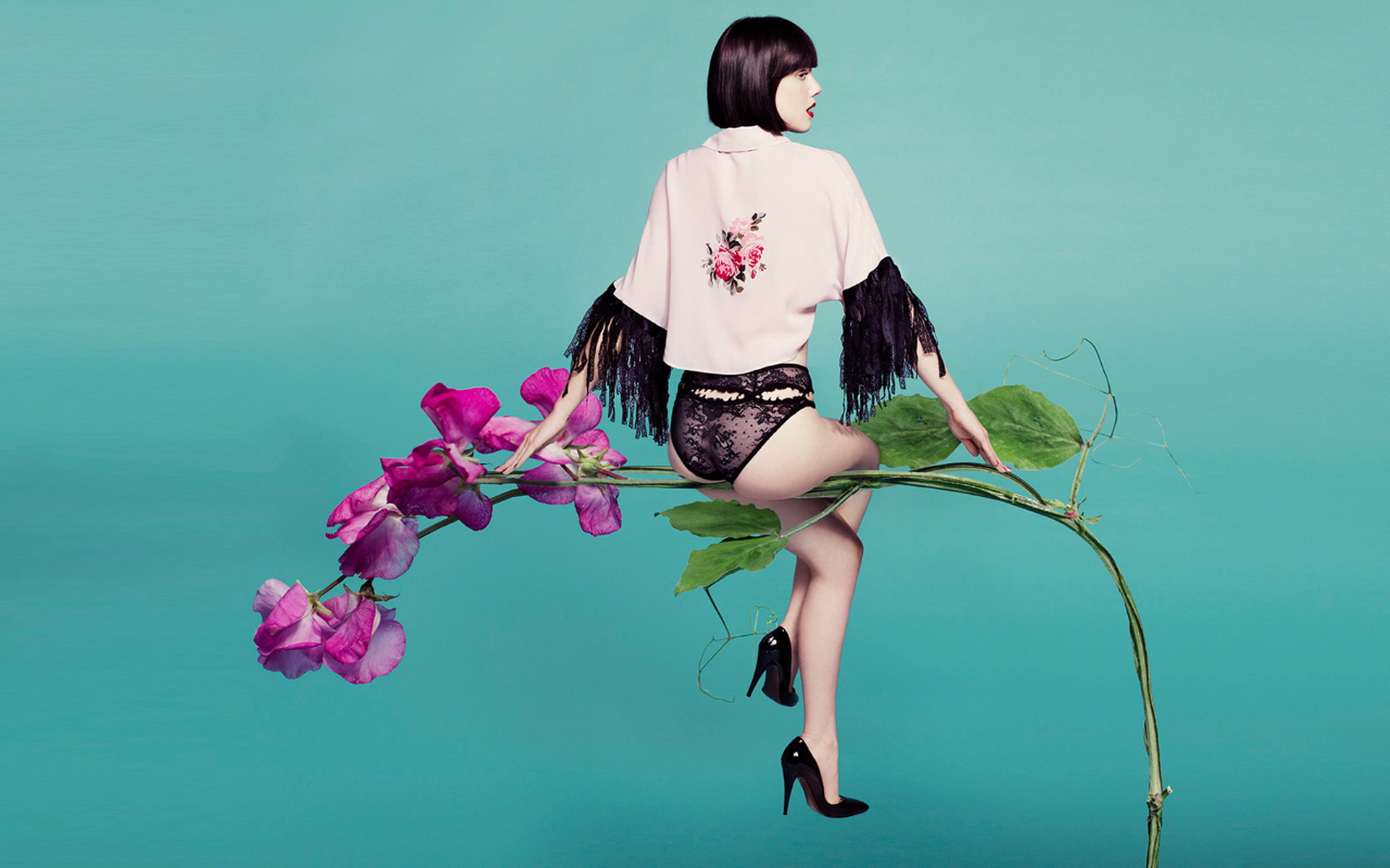 Скачать обои для рабочего стола Девушка на цветке и фото