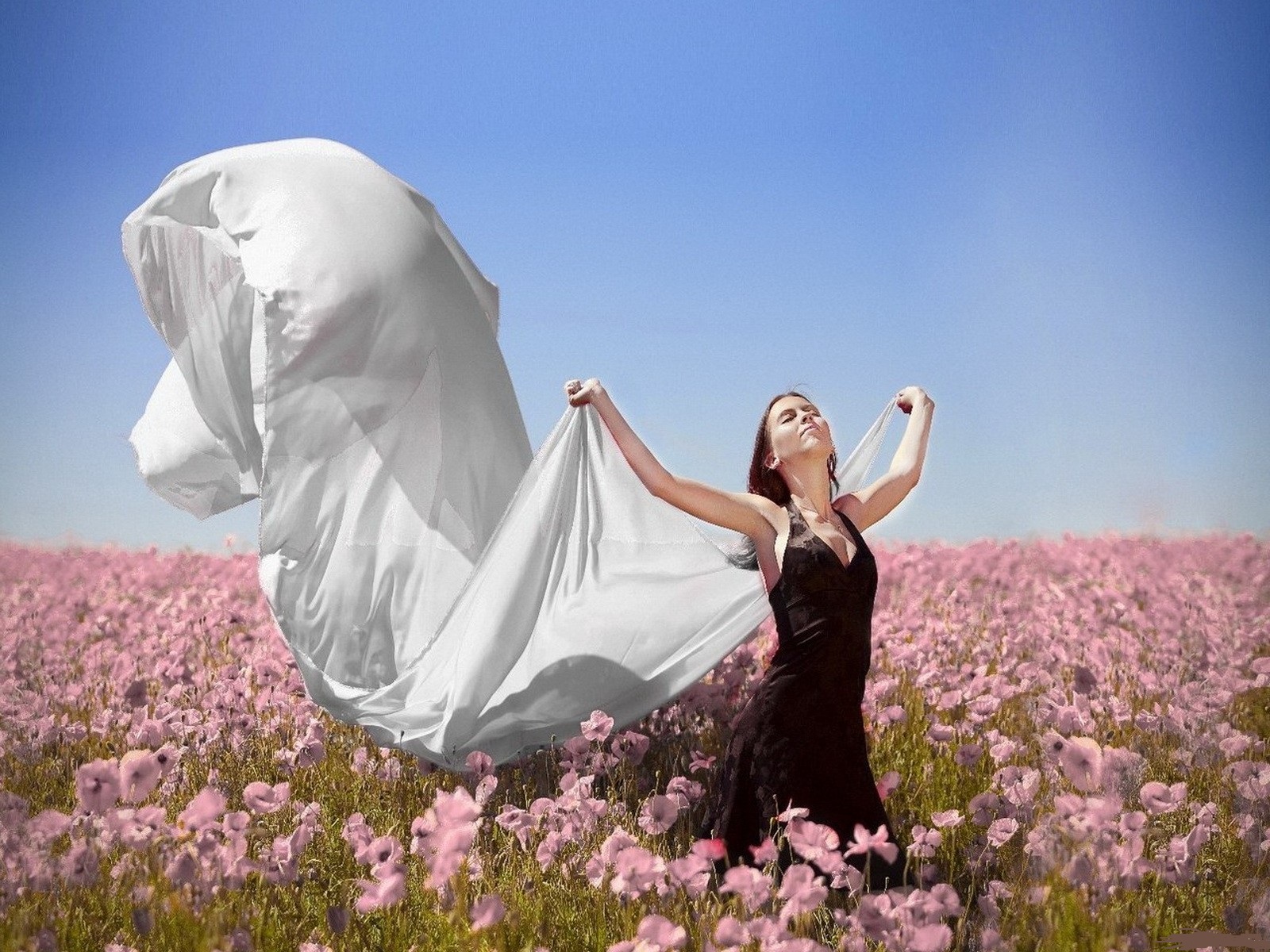 Обои Девушка на цветочной поляне
