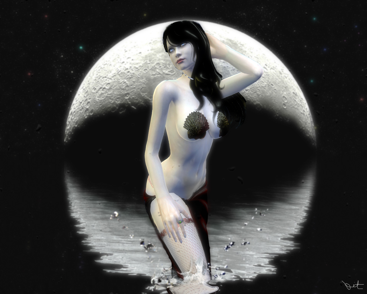 Скачать обои для рабочего стола Девушка на фоне большой Луны и фото