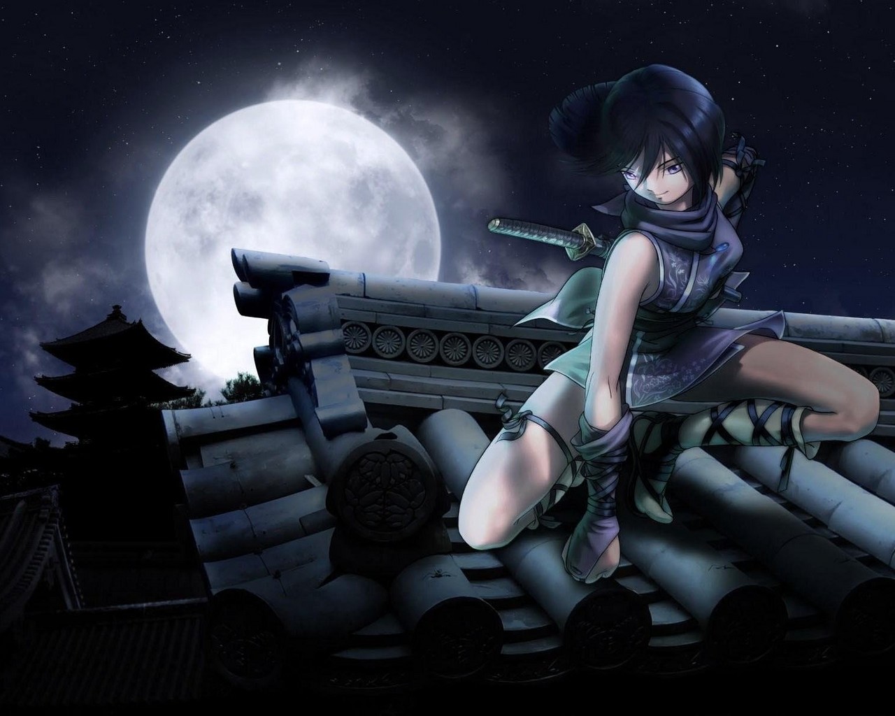 Скачать обои для рабочего стола Девушка на фоне луны и фото