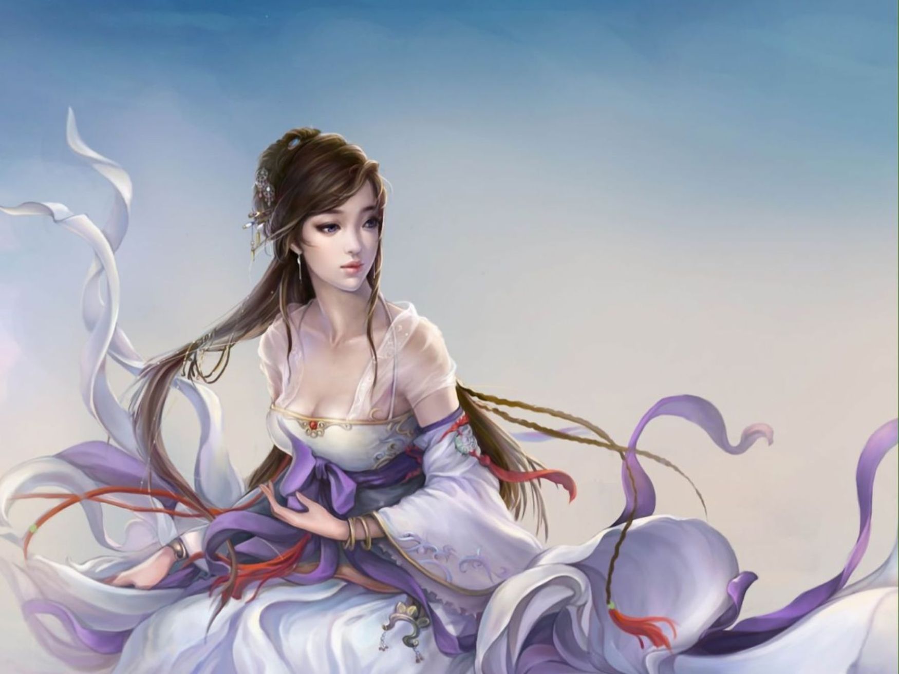 Скачать обои для рабочего стола Девушка на фоне неба и фото