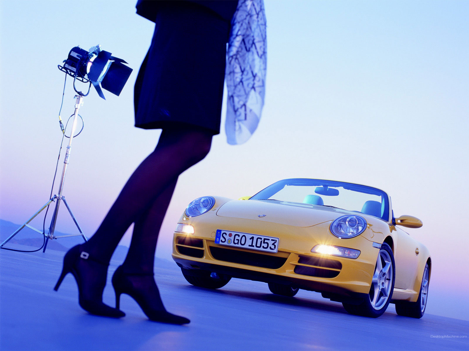 Скачать обои для рабочего стола Девушка на фоне Porsche 911 и фото