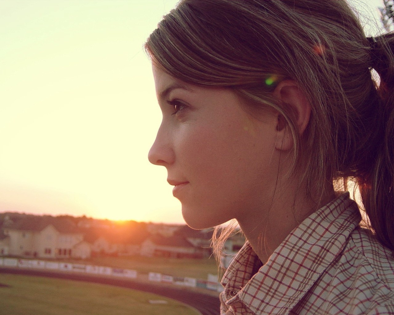 Скачать обои для рабочего стола Девушка на фоне восхода и фото