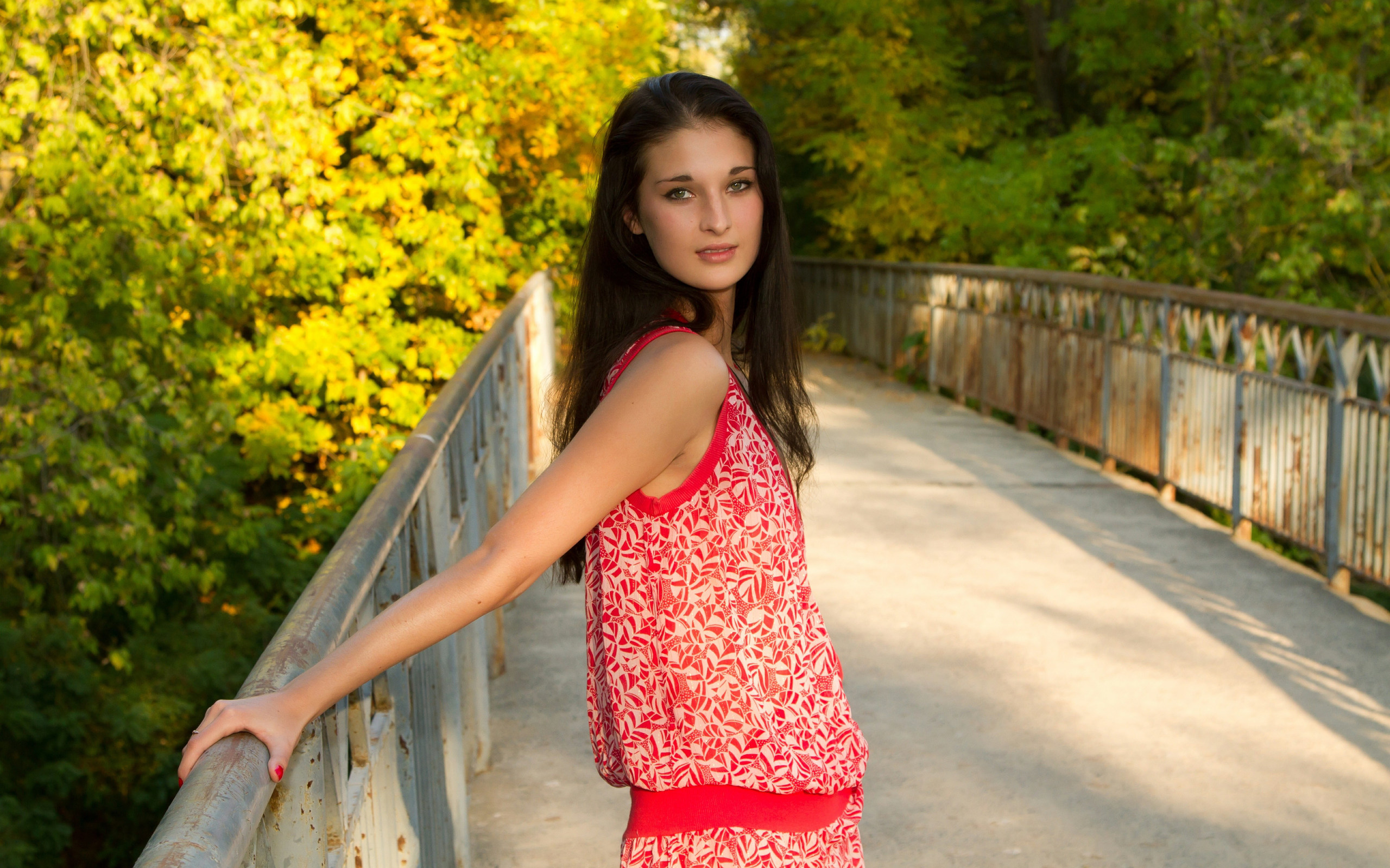 Скачать обои для рабочего стола Девушка на мосту и фото