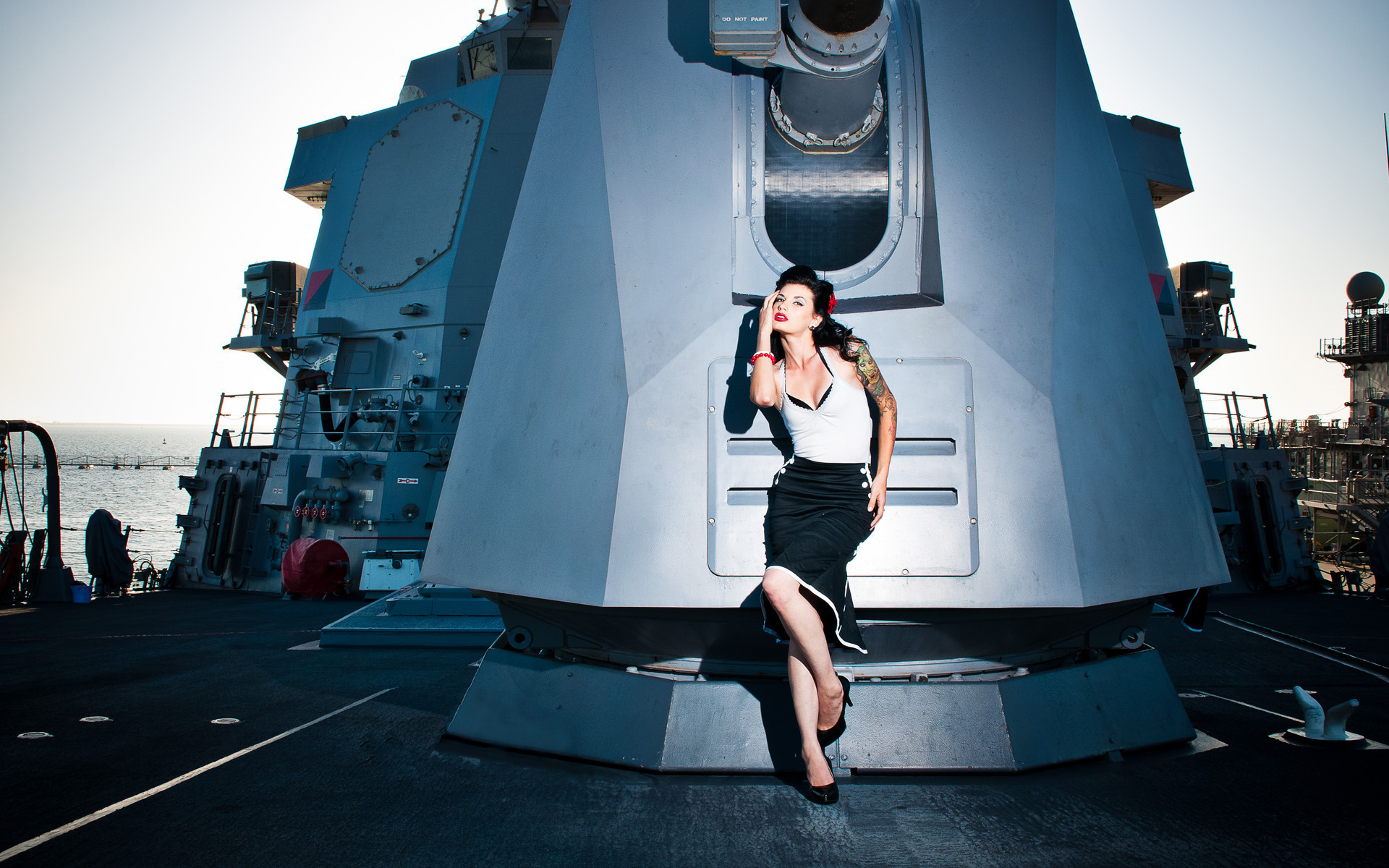 Похожие обои на Девушка на палубе у пушки:
