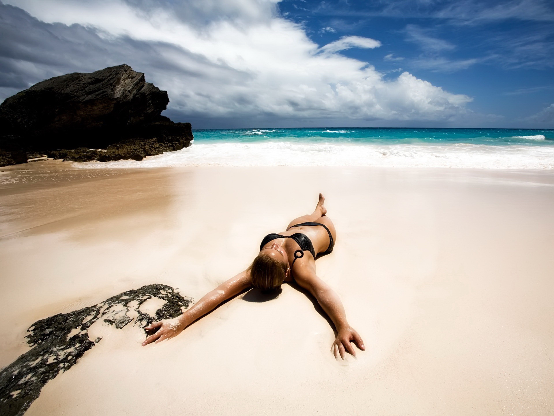 Скачать обои для рабочего стола Девушка на пляже и фото