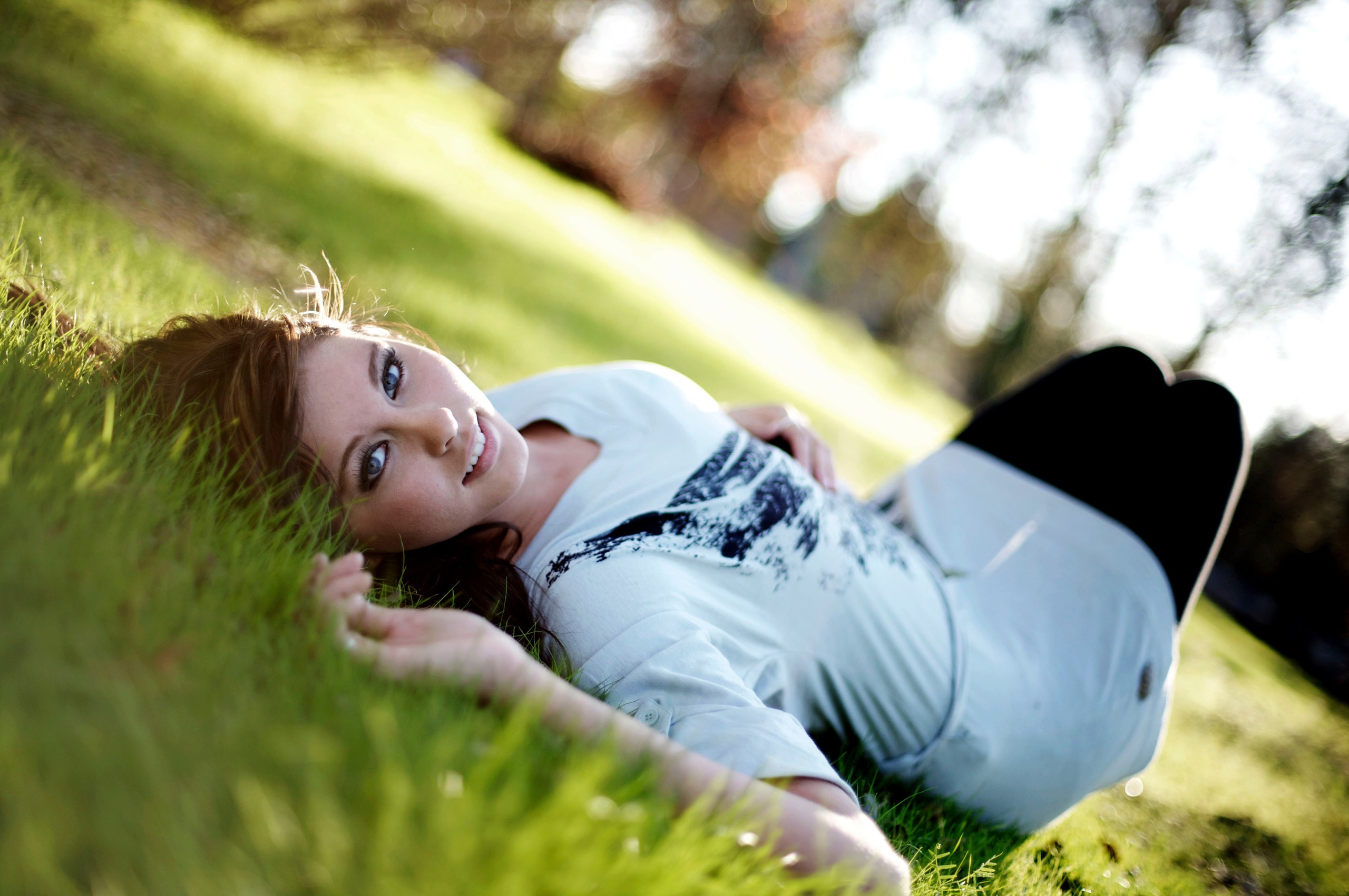 Скачать обои для рабочего стола Девушка на поляне лежит и фото