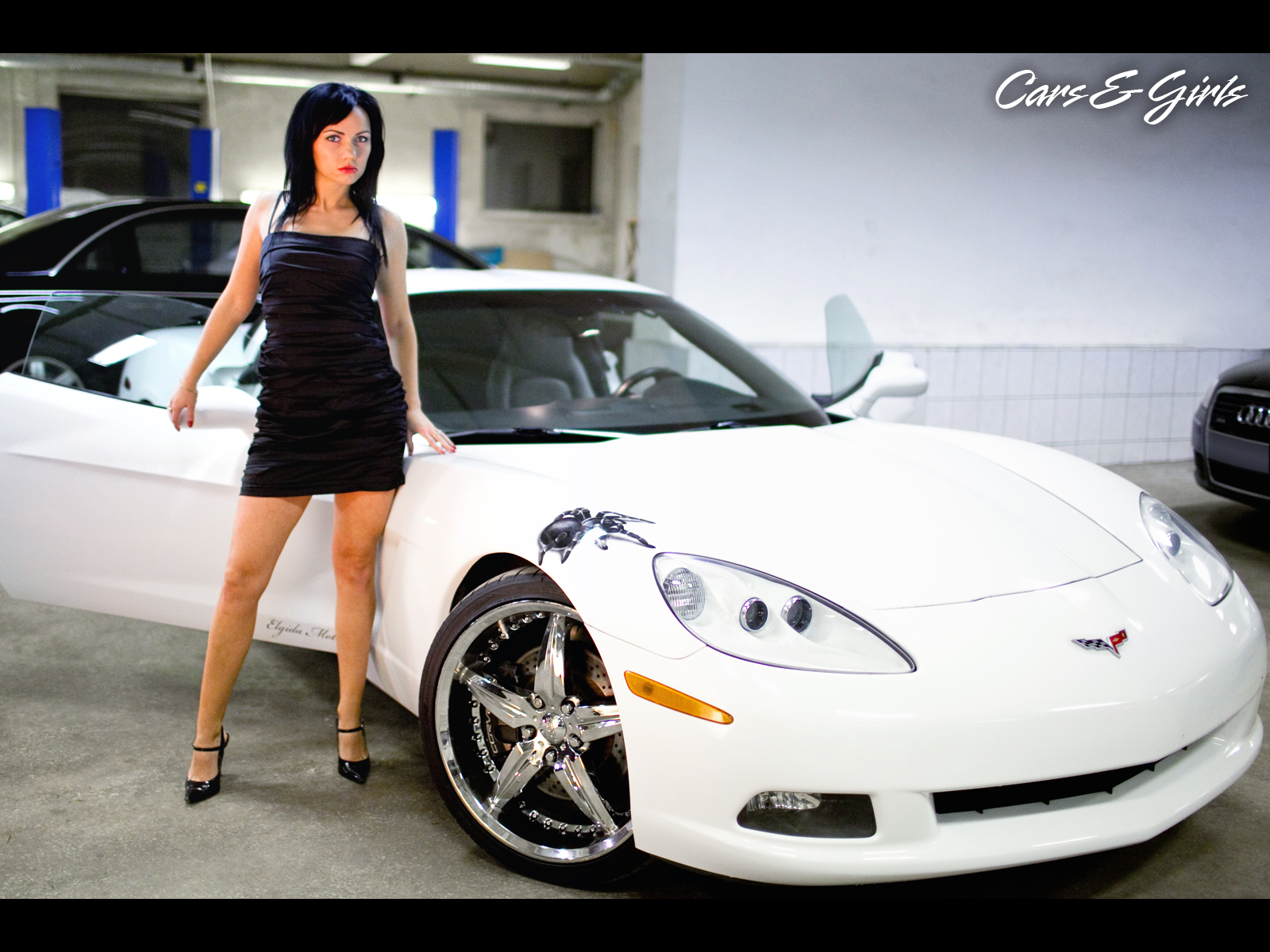 Скачать обои для рабочего стола Девушка около белой машины и фото