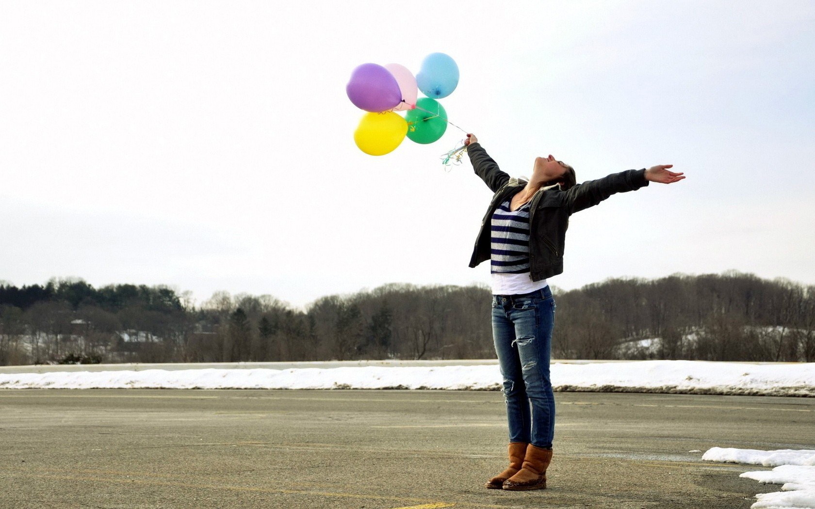 Скачать обои для рабочего стола Девушка пускает шарики и фото