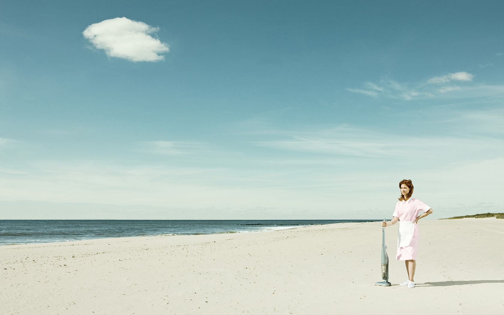 Скачать обои для рабочего стола Девушка решила пропылесосить пляж и фото