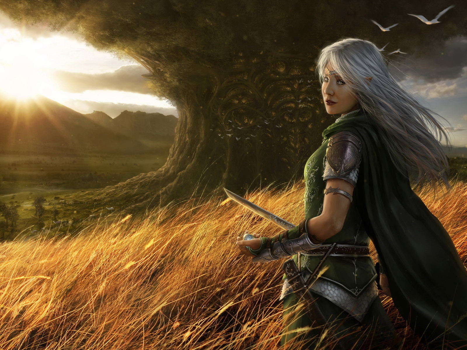 Скачать обои для рабочего стола Девушка рыцарь на поле и фото