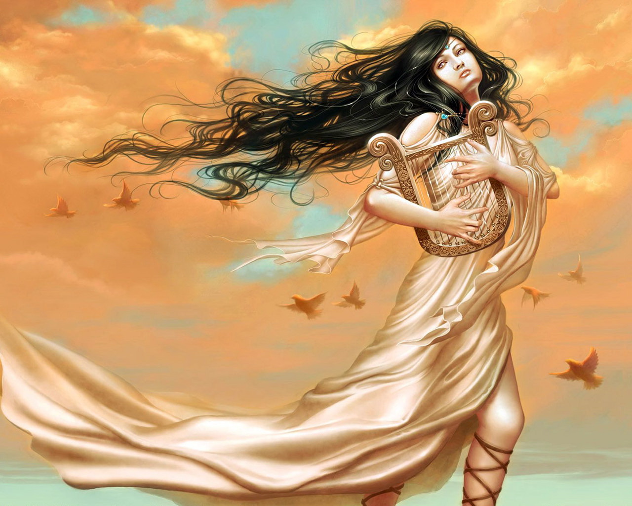 Скачать обои для рабочего стола Девушка с арфой и фото