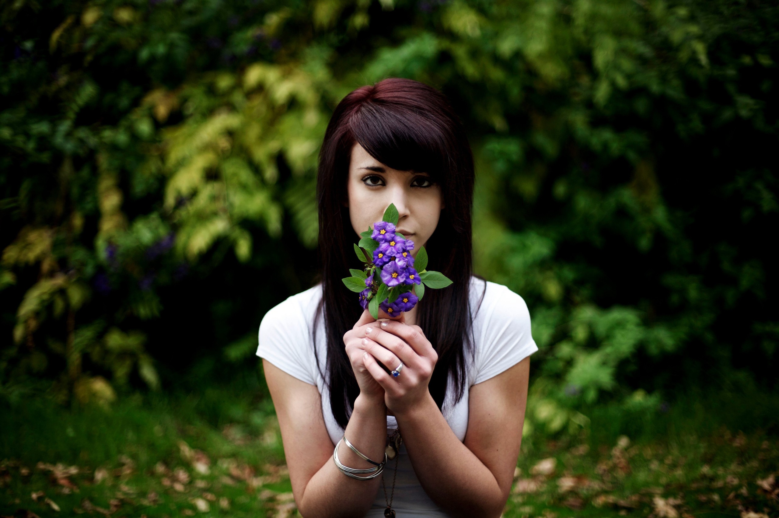 Скачать обои для рабочего стола Девушка с фиалками в руках и фото