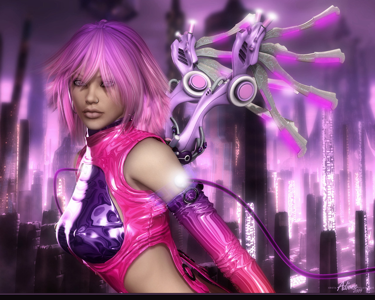 Скачать обои для рабочего стола Девушка с механическими крыльями и фото