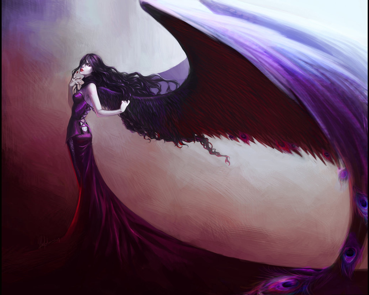Похожие обои на Девушка с огромными сиреневыми крыльями: