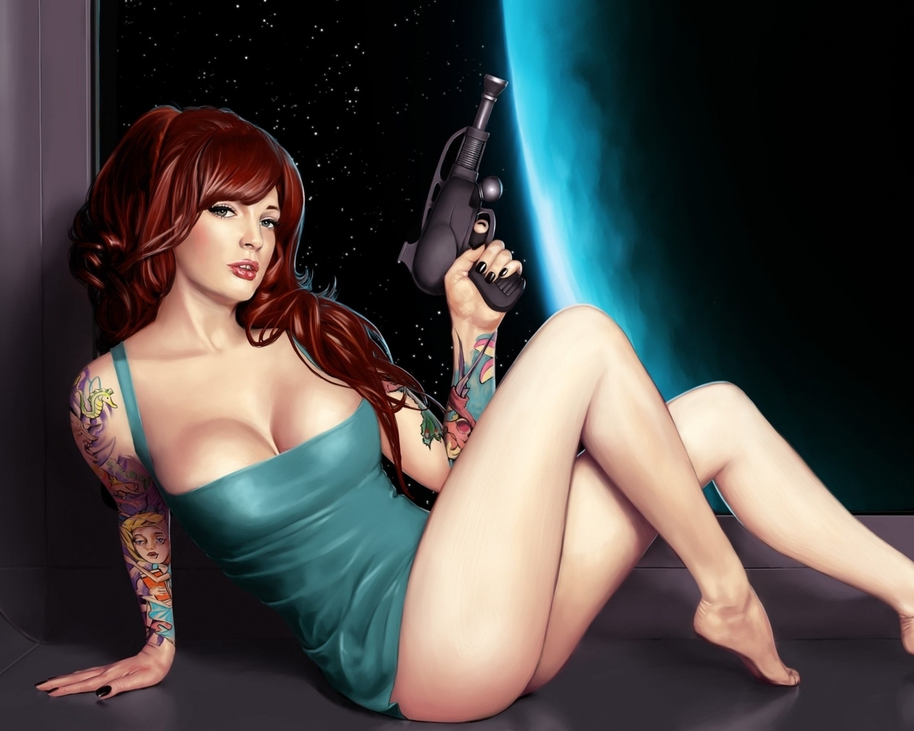 Скачать обои для рабочего стола Девушка с пистолетом и фото