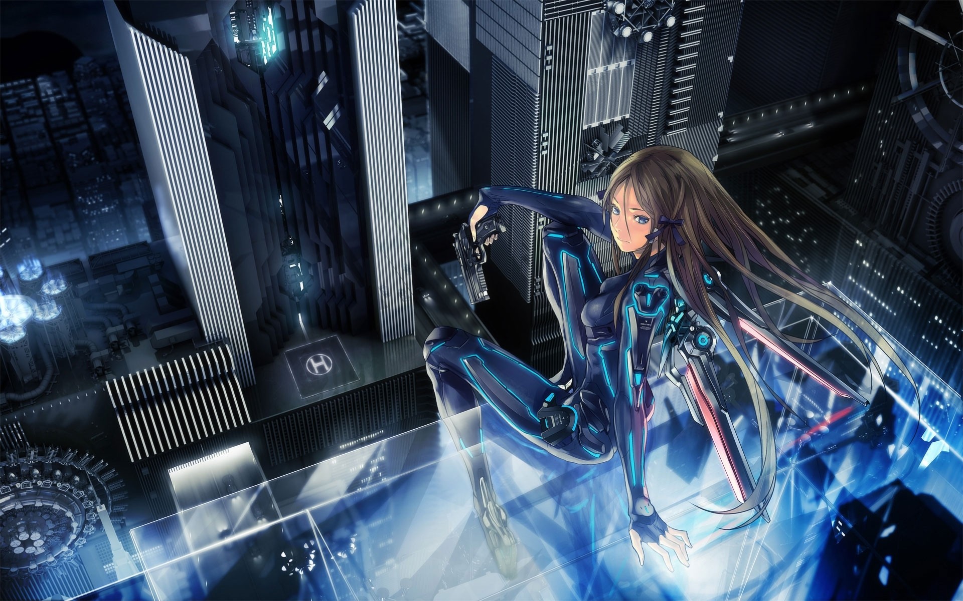 Похожие обои на Девушка с пистолетом на прозрачной поверхности: