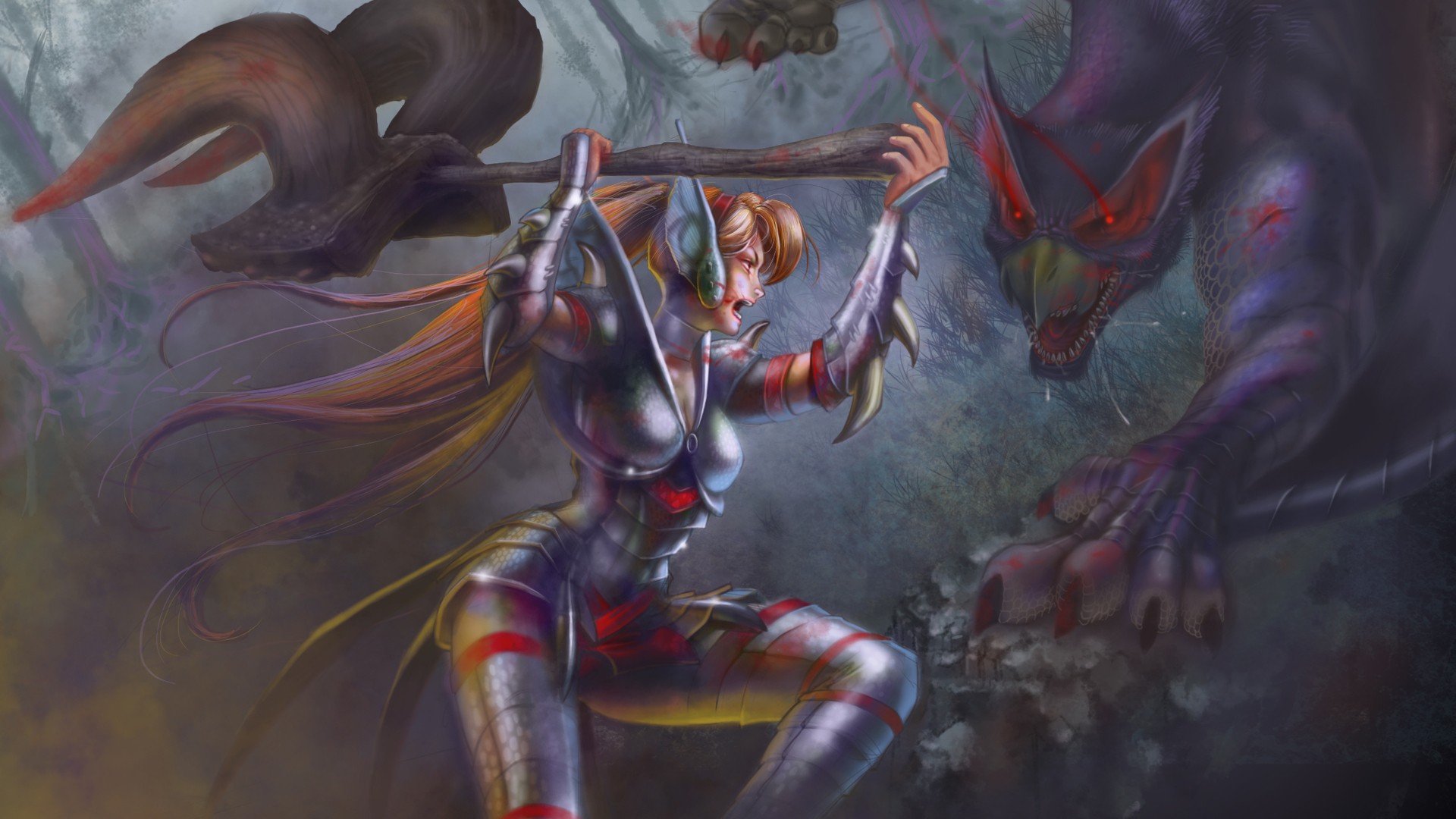 Скачать обои для рабочего стола Девушка с рогатой дубиной и фото