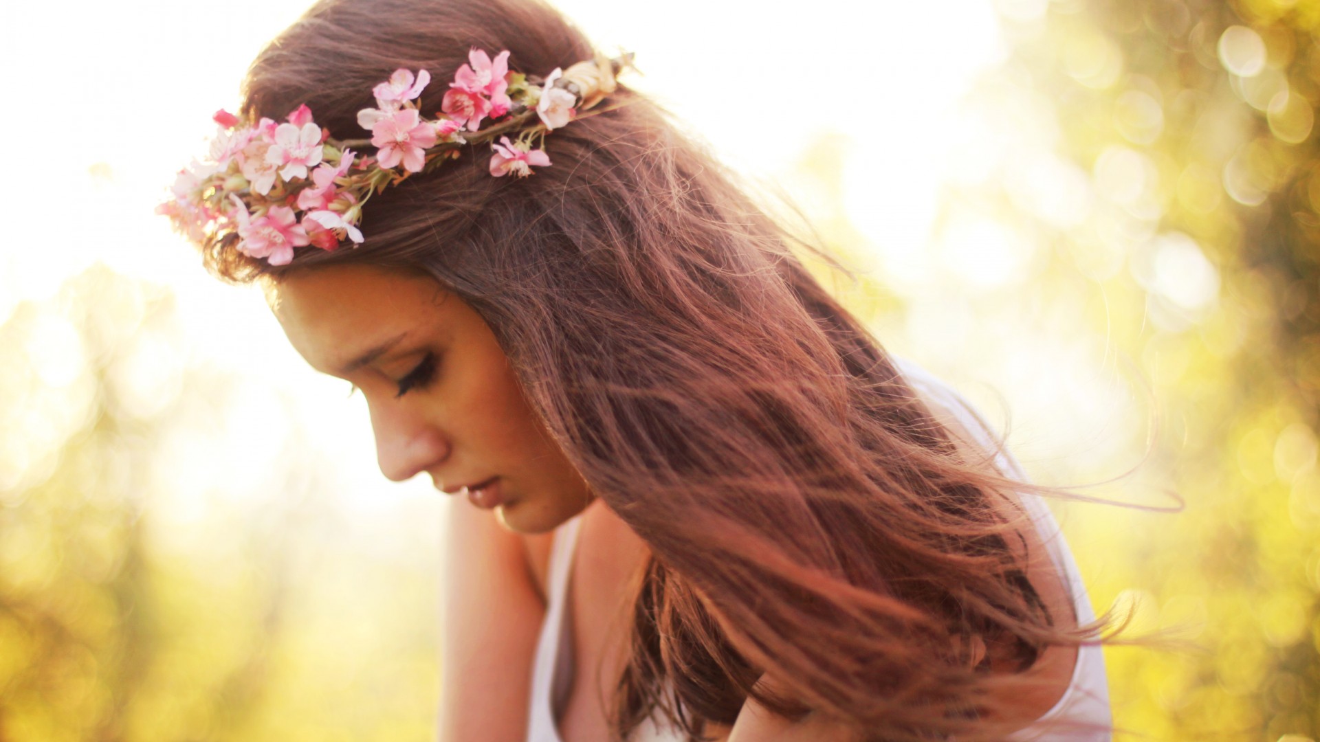 Похожие обои на Девушка с розовым венком на голове: