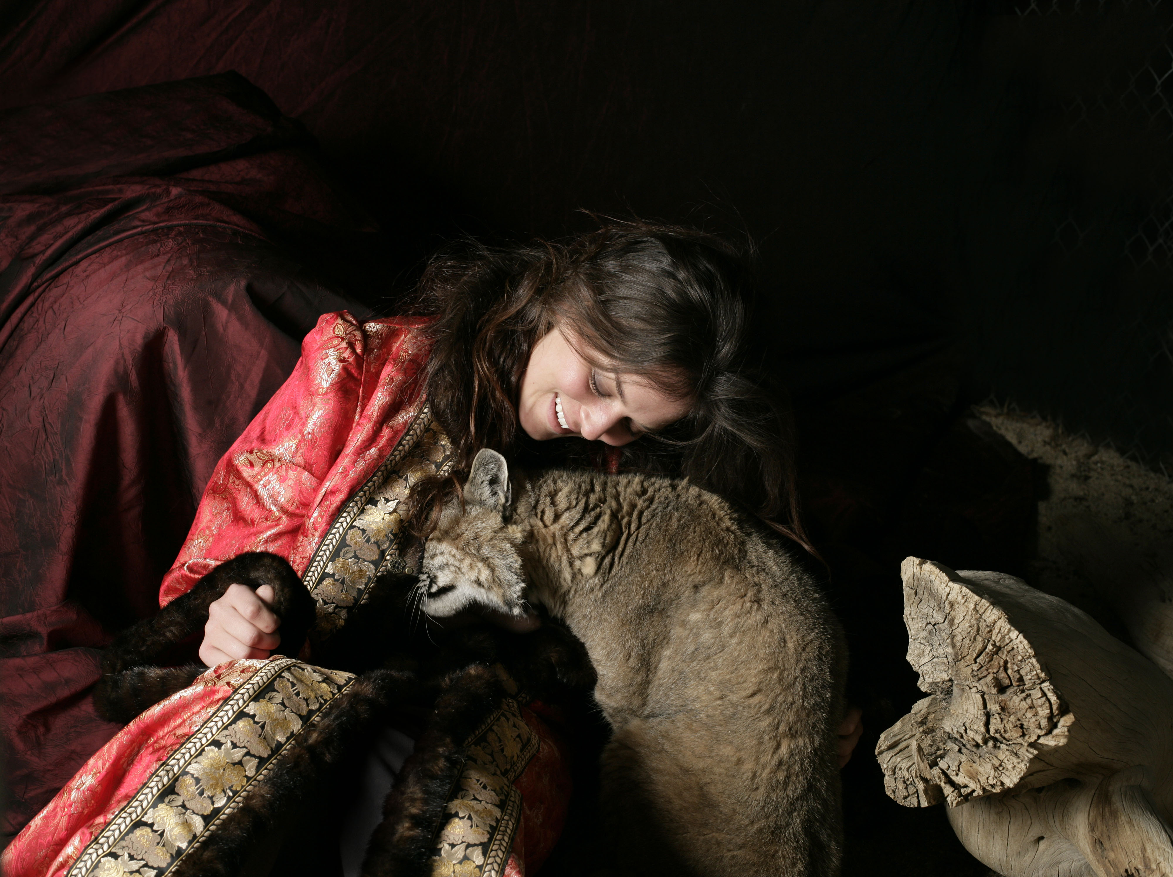 Скачать обои для рабочего стола Девушка с рысью и фото