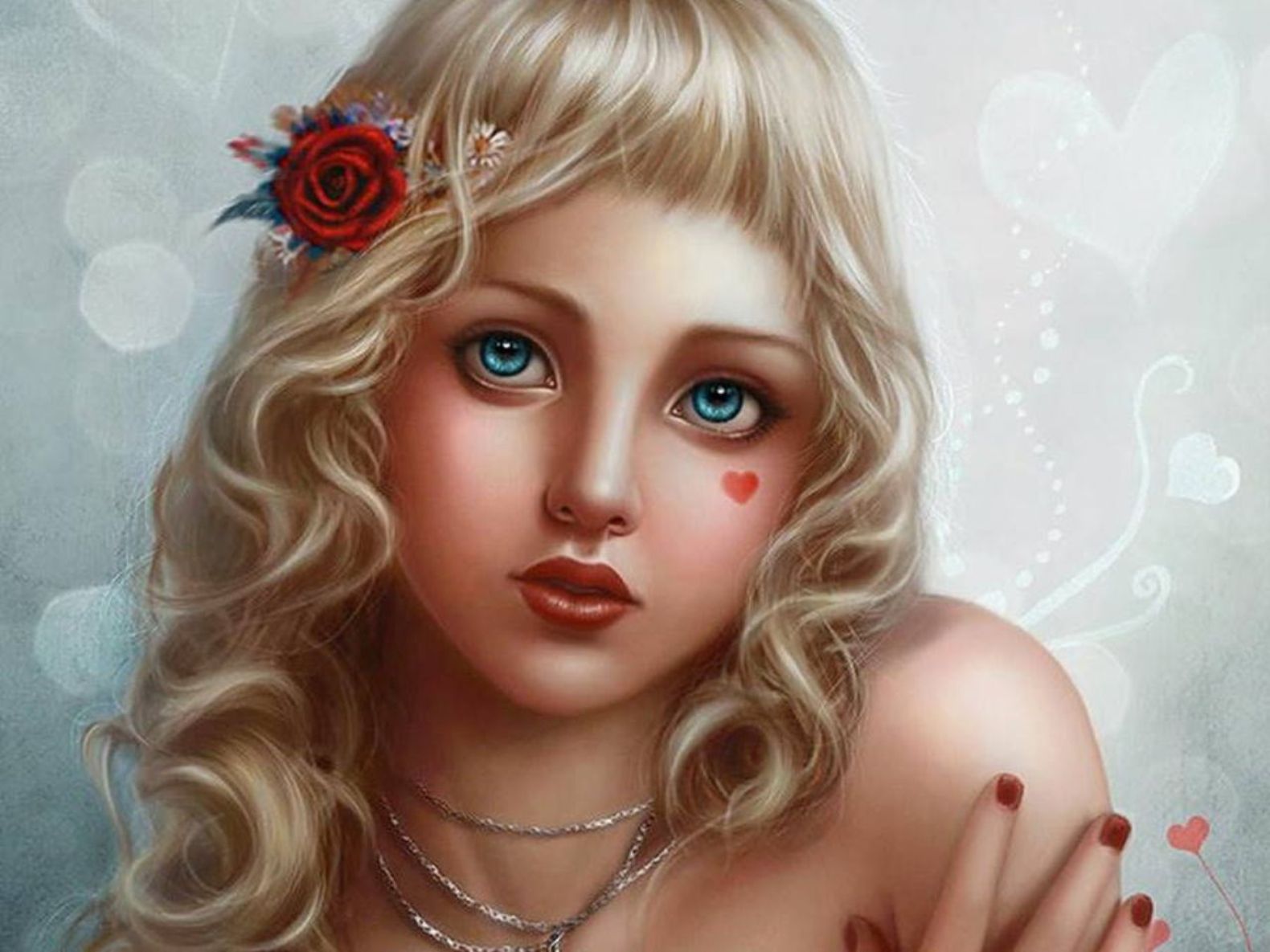 Скачать обои для рабочего стола Девушка с сердечком на щеке и фото